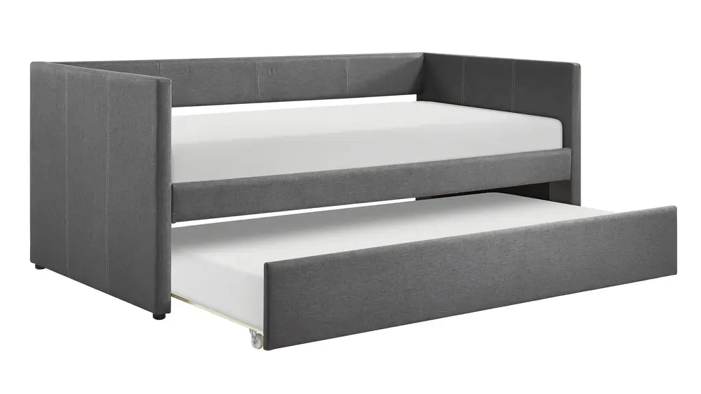 Whether tucking in for the night or lounging while reading a good book, the Corrina Daybed w/ Trundle is a versatile option for your bedroom space. The modern lines of the daybed lend to myriad decorative aesthetics ranging from modern to transitional while the hue of the fabric upholstery provides further complement to your space. The additional sleep space the included trundle can provide for your home allows for convenient access when it is needed and discrete storage when it is not in use.