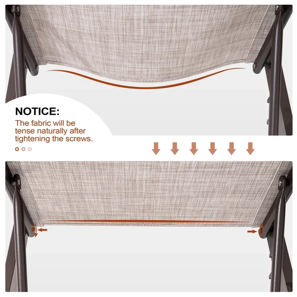 Relax in ultimate comfort and style with this chaise lounges sun bed loungers and small side table 3-piece set. Crafted with durable aluminum frames and breathable Textilene mesh sling seating, these lounges offer six adjustable positions (including lay the back flat) for ergonomic support. The included side table provides convenience and completes the look. Rust and water-resistant, this set is perfect for outdoor use and available in multiple colors to match any decor. Features: Includes 2 aluminum chaise lounges and 1 aluminum side table Durable aluminum frames Breathable Textilene sling fabric seating Back with 6 adjustable positions (including lay the back flat) for ergonomic comfort Rust and water-resistant material for long-lasting use Available in multiple colors to match any decor Assembly required Please note that the set in Black and Beige will ship to you in two boxes, one box contains 2 chairs, the other contains one table. Additional Details: Overall dimensions: 74.80" L x 23.54" W x 13.78" H (when lay flat) Seat sizes: 43.31" D x 23.54" W Seat height: 13.78" H Backrest dimensions: 31.49" L x 21.85" W Lounge weight capacity: 270 lbs Table dimensions: 15.7" L x 15.7" W x 15.9" H Table weight capacity: 110 lbs