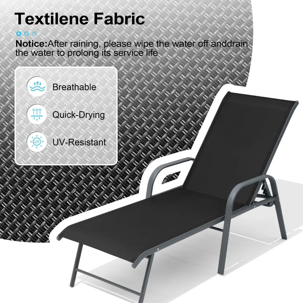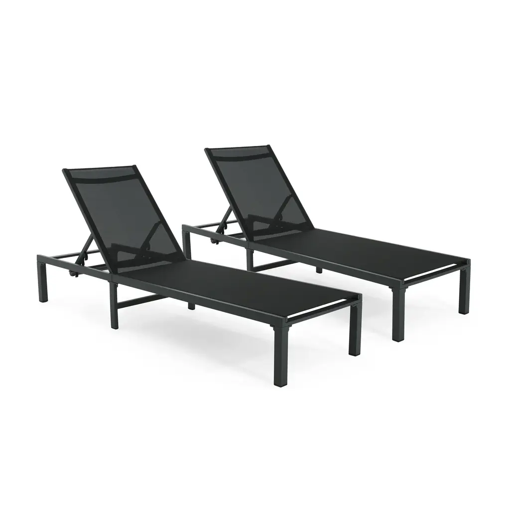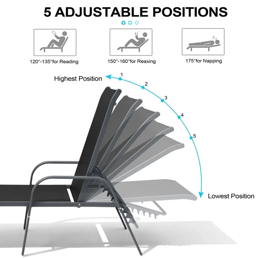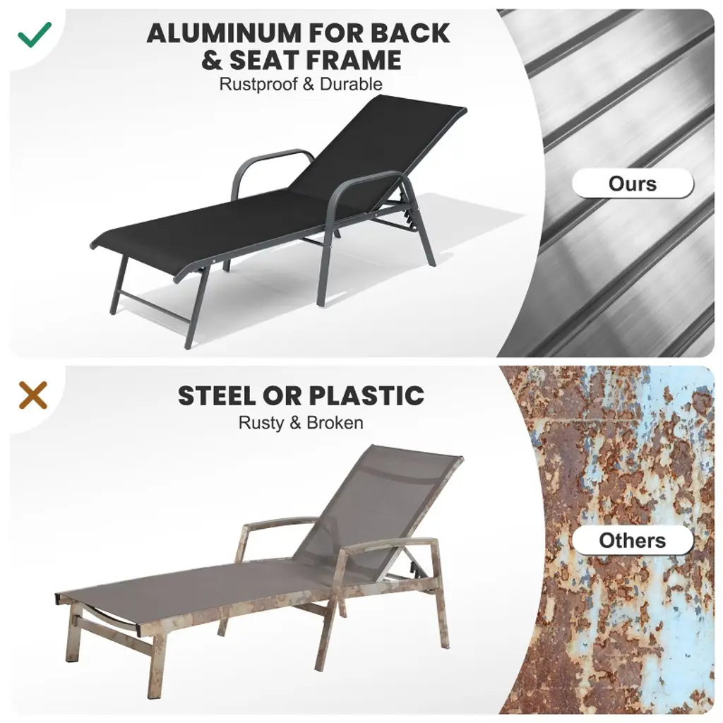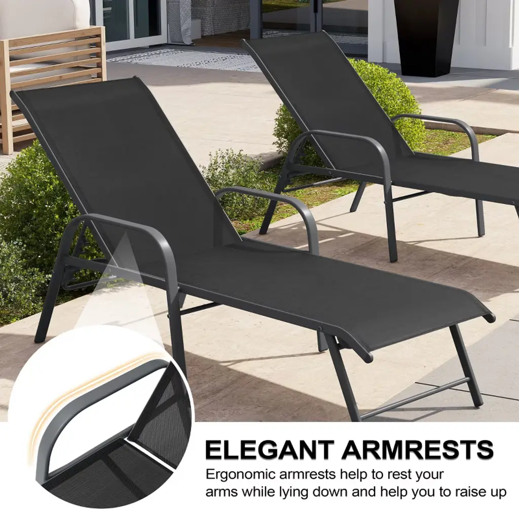 Crestlive Products Set Of 2 Outdoor Lounger Aluminum Frame Chaise Lounge Chairs With Arms & 5 Adjustable Recline Positions (Black)