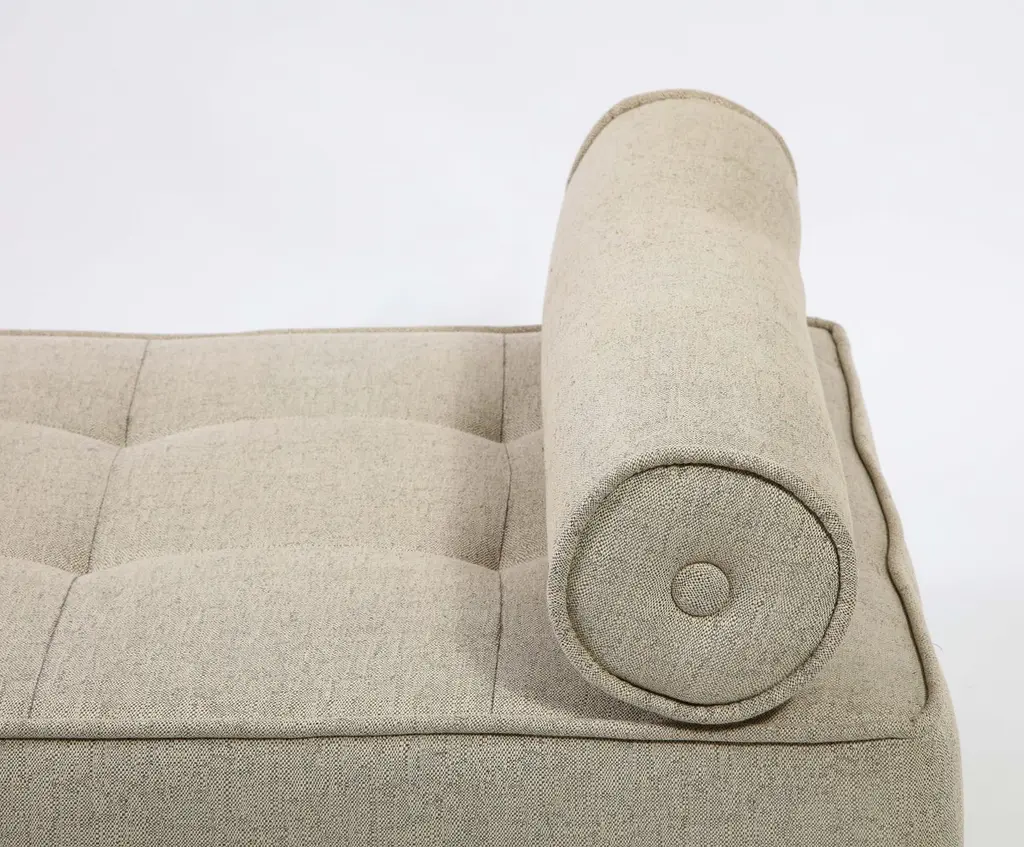 Oak frame upholstered in linen with bolsters.Can be ordered in any size, COM 8yds.