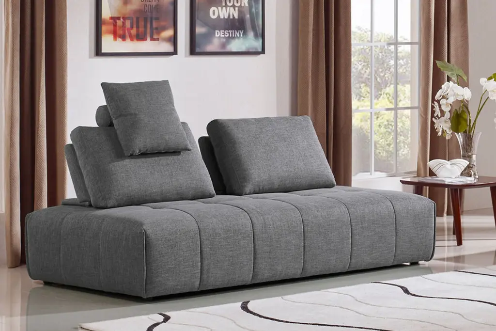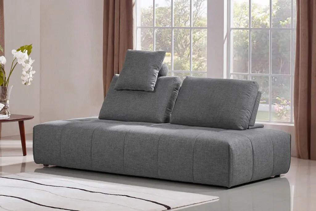 The Cyndi Lounger offers a minimalist versatility and exceptionally unique design for modern design lovers. Its weighted, non-slip backrests offers clever use of its remarkable style allowing multi-configurations with incredible support. Its armless and plushly cushioned seat is comfortable and fully lounge worthy. It is upholstered from top to bottom in soft fabric accented by delightful channel tufting providing more visual interest to an already exceptional design. It comes with one matching accent pillow for added modern style.