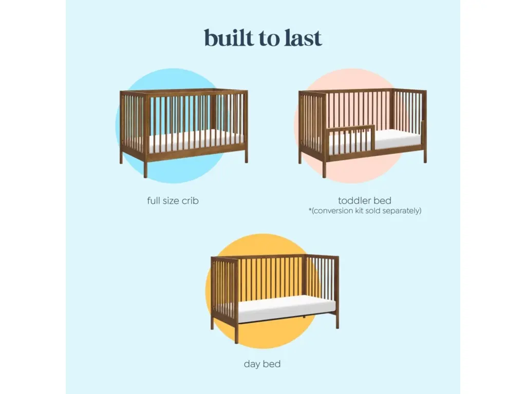 The simple yet versatile design of the Birdie 3-in-1 Convertible Crib adds style to both modern and classic nurseries. Built to seamlessly transition from newborn to toddler, the crib has four different mattress heights and easily converts to a toddler bed and daybed.
