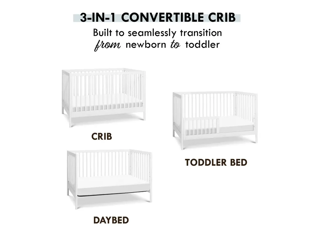 The simple yet versatile design of the Birdie 3-in-1 Convertible Crib adds style to both modern and classic nurseries. Built to seamlessly transition from newborn to toddler, the crib has four different mattress heights and easily converts to a toddler bed and daybed.