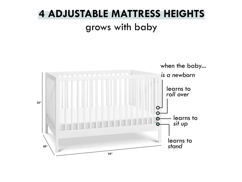 The simple yet versatile design of the Birdie 3-in-1 Convertible Crib adds style to both modern and classic nurseries. Built to seamlessly transition from newborn to toddler, the crib has four different mattress heights and easily converts to a toddler bed and daybed.
