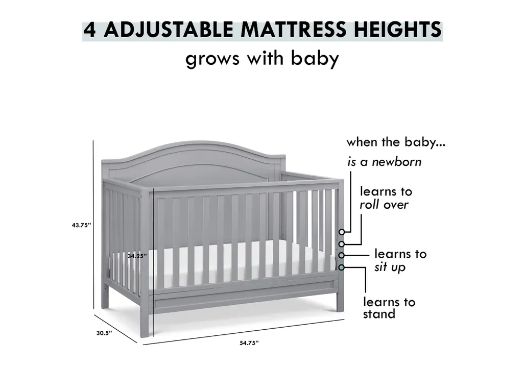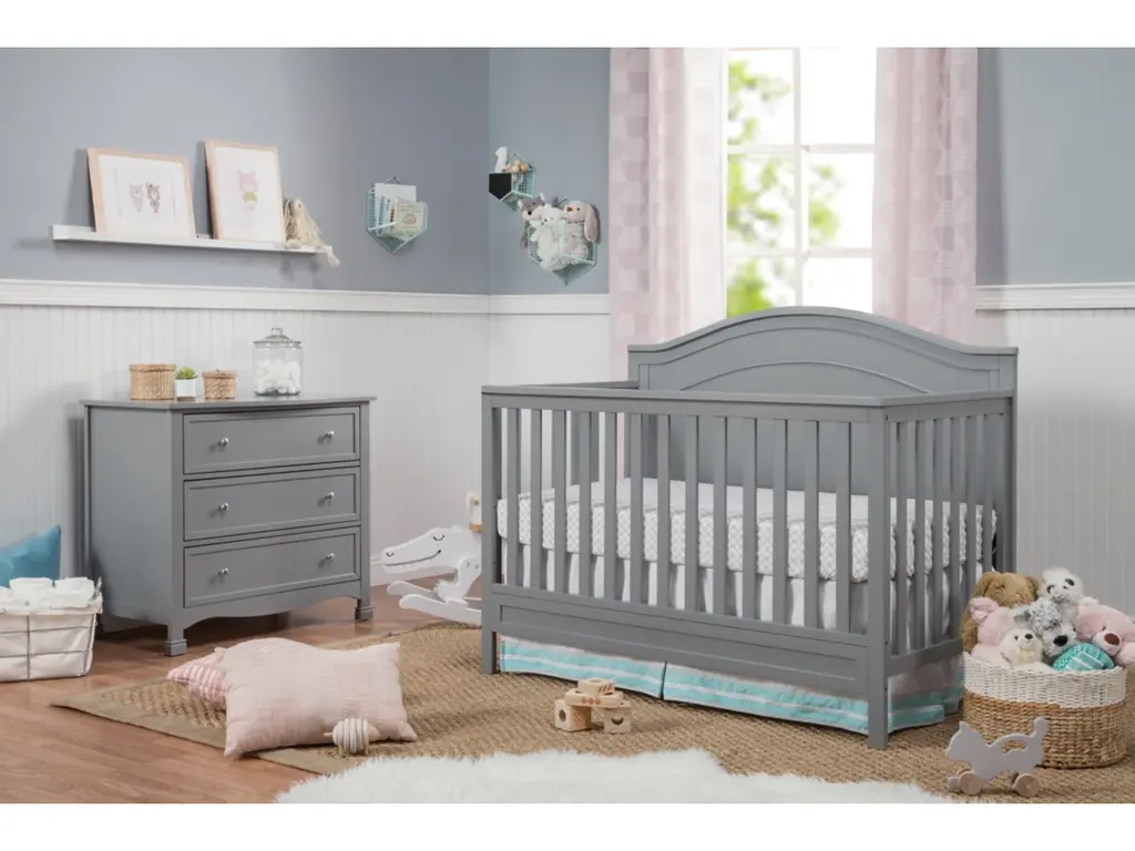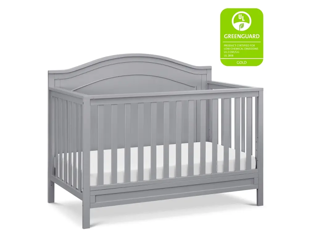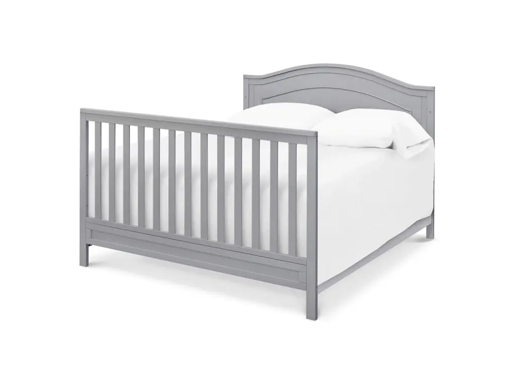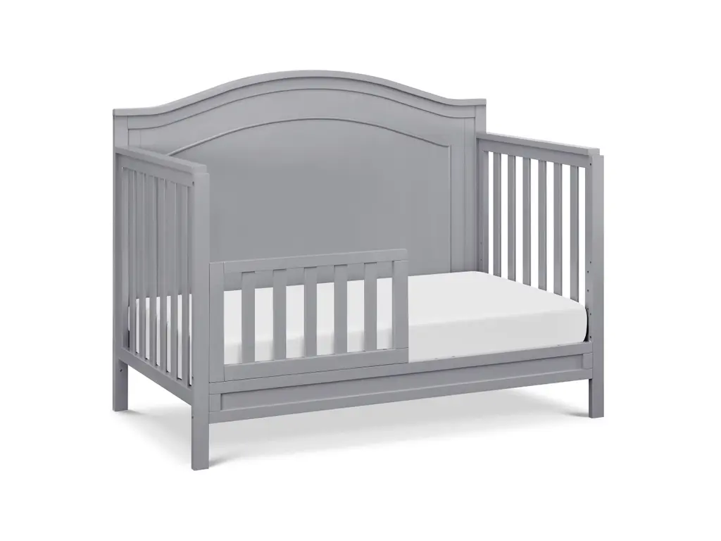 The polished Charlie 4-in-1 Crib features a graceful arched headboard with delicately carved molding and slim feet. The crib easily converts from crib to toddler bed, daybed and full-size bed.