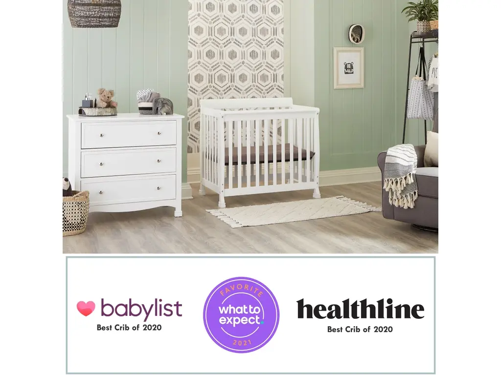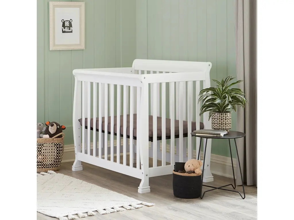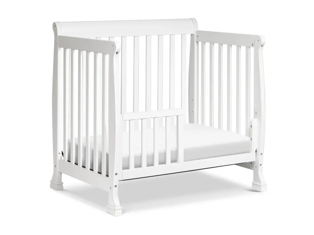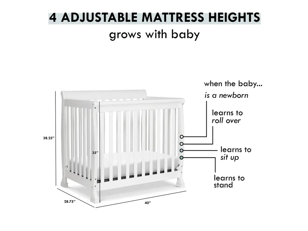The Kalani Mini Crib is elegance, durability and reliability. Mirroring the Kalani 4-in-1 Crib's timeless design, the Kalani Mini Crib features soft and subtle curves. Four mattress levels allow you to adjust the mattress height to your child's growth. Beyond the nursery years, the Kalani Mini Crib conveniently becomes a beautiful mini toddler bed, daybed, and twin-size bed (conversion kits sold separately).