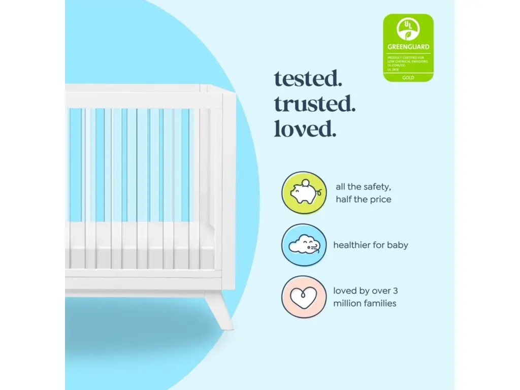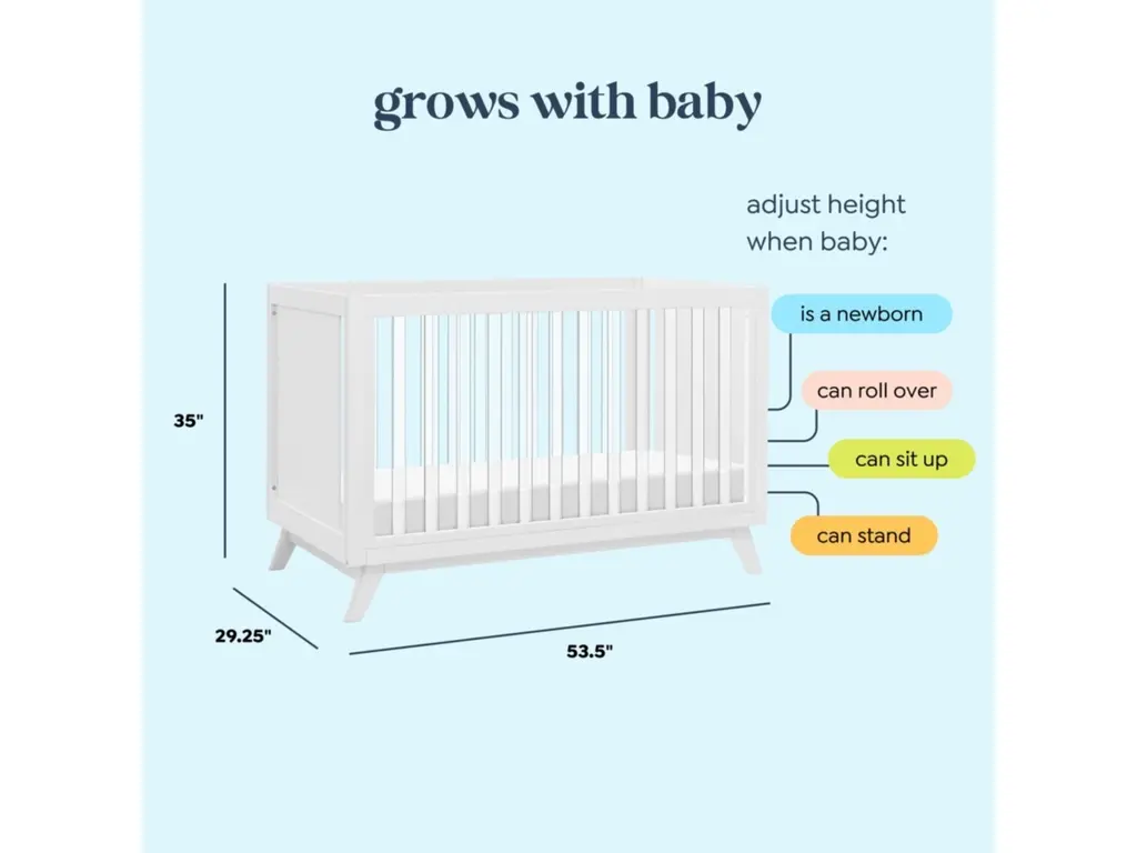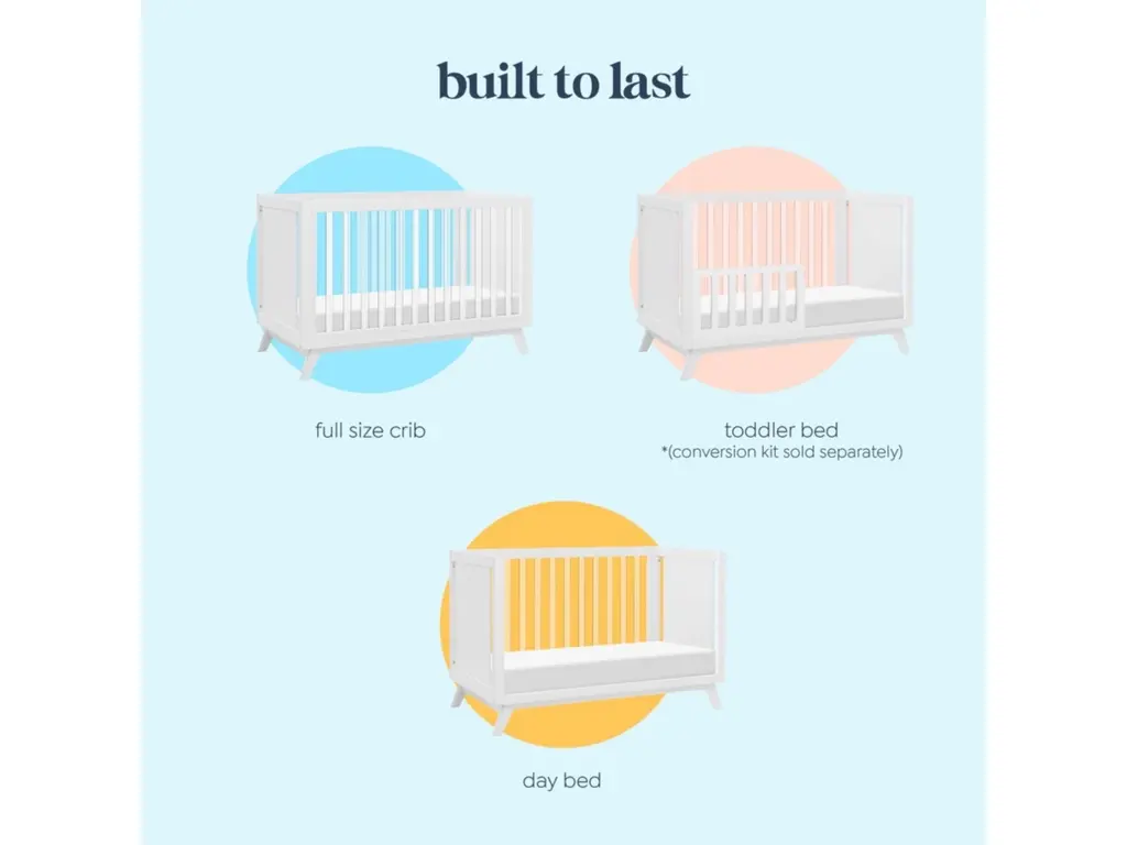 The Otto 3-in-1 Convertible Crib captures timeless mid-century modern design with its clean lines, flared legs, and solid wooden slats. Built to seamlessly transition from newborn to toddler, the crib has four different mattress heights and easily converts to a toddler bed and daybed. Coordinates with the Otto Convertible Changing Table and Cubby Bookcase for a stylish and modern nursery.