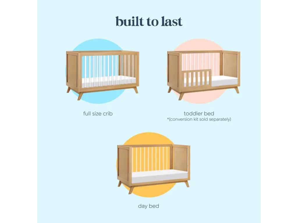 The Otto 3-in-1 Convertible Crib captures the timeless mid-century modern design with its clean lines, flared legs, and solid wooden slats. Built to seamlessly transition from newborn to toddler, the crib has four different mattress heights and easily converts to a toddler bed and daybed. Coordinates with the Otto Convertible Changing Table and Cubby Bookcase for a stylish and modern nursery.