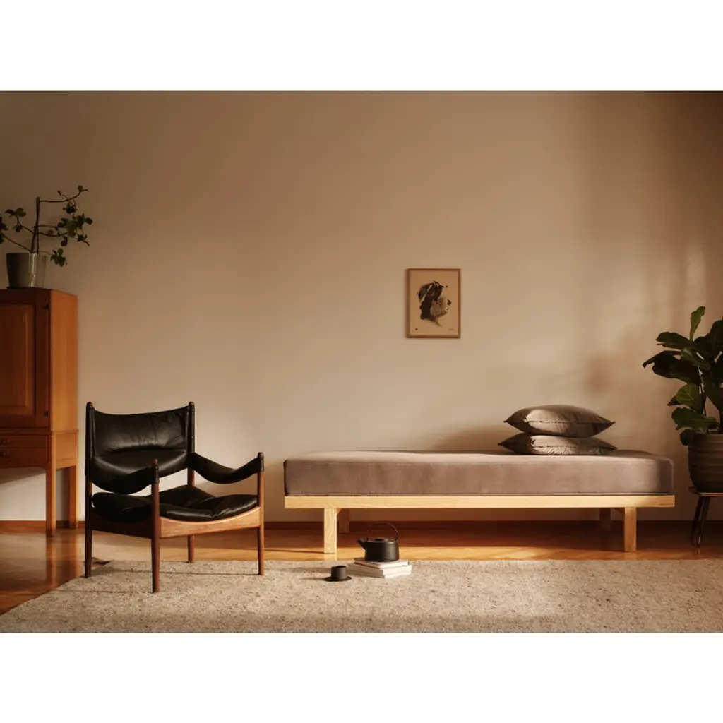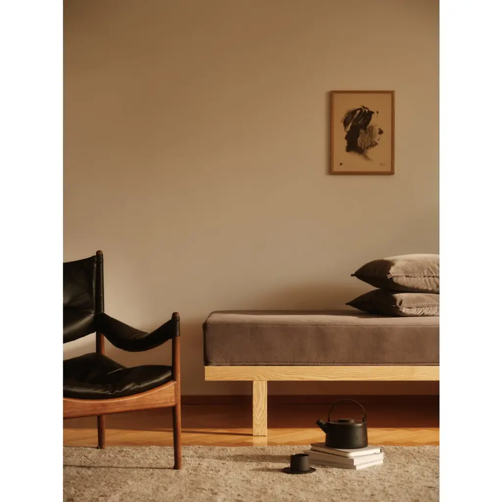 Matri's Daybed transforms any room into a welcoming guest space – and when visitors aren’t around, it doubles as a stylish sofa or chaise longue! The minimalist sofa impresses with its versatility: a slatted base, pocket springs, and a jute-latex cushion ensure both seating comfort and sweet dreams, while the detachable and reversible mattress adds even greater versatility. The sturdy ash frame promises stability and restful nights. If you wake from a bad dream, you can be sure the Daybed isn’t the one to blame!