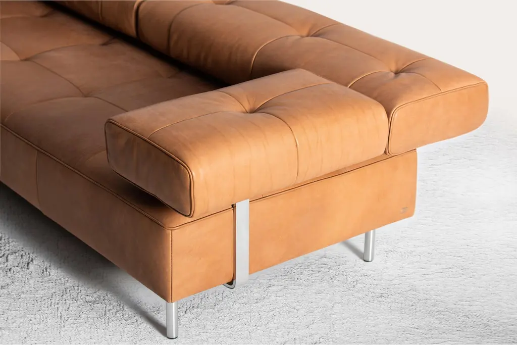 The adrenaline surges, the heart beats faster, an unusually comforting feeling takes hold in the stomach, and suddenly it seems as if the world is frozen in place: even the ancient Greeks believed in love at first sight, Shakespeare wrote about it, and Lady Gaga and Bradley Cooper sang about it in “A Star Is Born:” “Far from the shallow now.” Also perched miles away from the superficial is DS-880, this imperishable homage to love at first sight. Whether used as a recliner, daybed, recamier or sofa – this classic item of upholstered furniture, now reimagined by our master craftsmen, keeps a perennial smile on its owners’ faces, whether for its steadfast quality, its unmis-takable materiality or its irresistible originality. Just as with love at first sight: with DS-880, everything is perfect at every turn.Designed in two levels, the arm-rests or backrests on the upper plateau can be placed in variable positions. Its design coyly flirts with variable sitting positions – from comfortable seating to relaxed napping and carefree unwinding. The DS-880 comes across as an exciting eye-catch-er and the ultimate answer to the search for that one, perfect item of furniture. Presented in patchwork, the bed is a tribute to the craft of leather and carries the message of our manufacture into your own four walls: as an everlasting slice of joie de vivre made of the most sustainable material. Nothing short of the kind of eye-catcher seen in love at first sight.Additional Information:Material: LeatherModel: DS/880, composed of: Module /23Category: Touch - cuoioType: Natural nappa leatherThickness: 1.2 mmCharacteristics: One-of-a-kind thanks to the authentic structure and silky sheen of the untreated skin – a leather that cannot be more original or of better quality. Particularly fine and intensive in its unparalleled feel. The ageing process creates an especially authentic and exquisite patina.Dimensions: W 236 x D 97 - 113 x H 58 - 79 cm Available in other upholstery options: Living, select, naturale, coloralAvailable in different structural versions.
