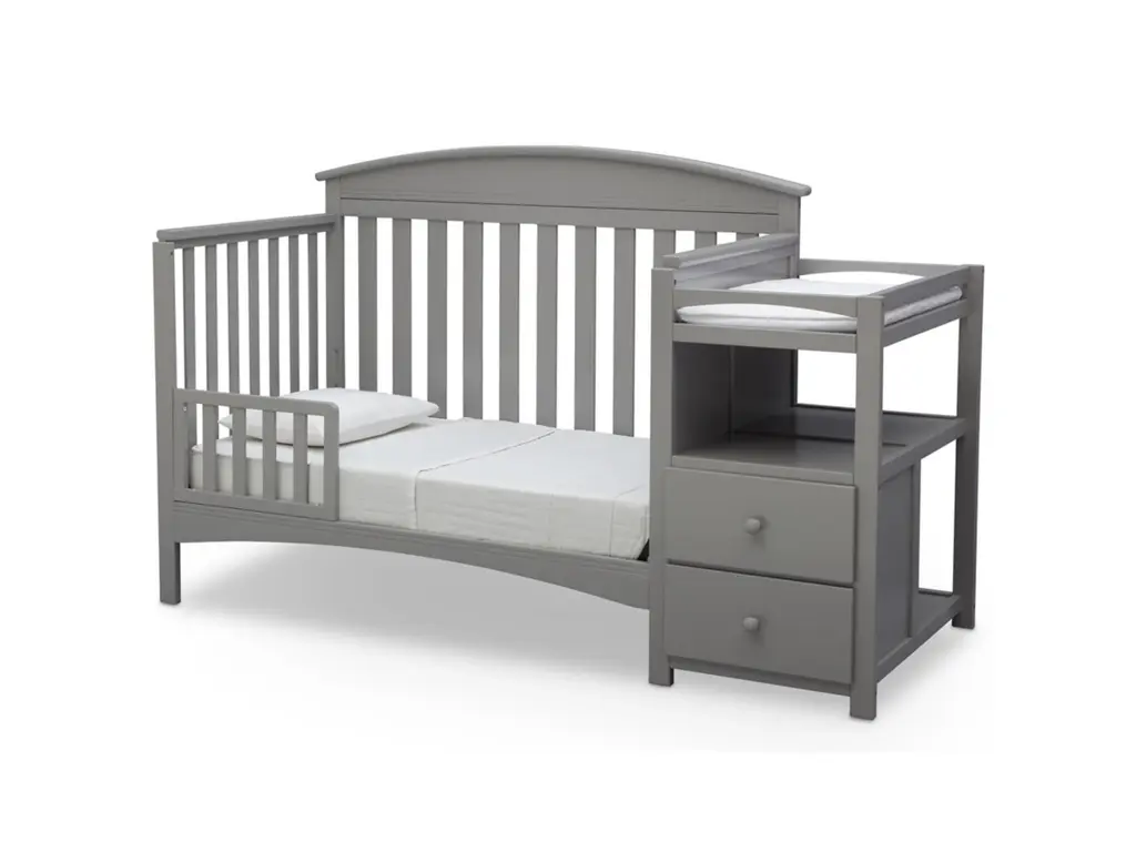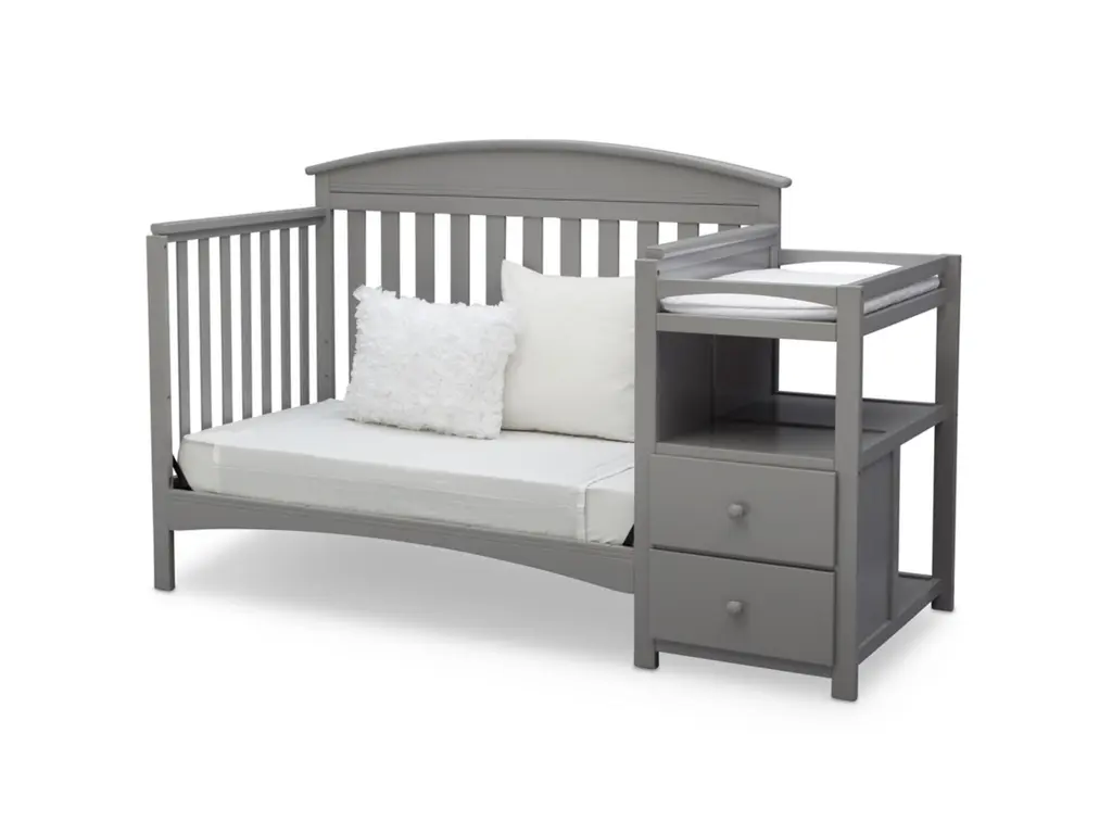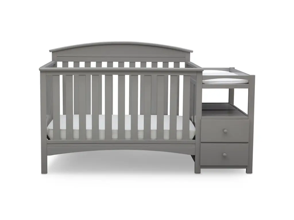 An all-in-one convertible crib that grows with baby, convenient changing table, even a storage piece—you’ll find so many ways to use the Abby Convertible Crib N Changer from Delta Children. The adjustable crib features three different mattress height positions, and converts to a toddler bed, daybed and full-size bed to accommodate their changing needs (Toddler Guardrail and Full Size Bed Frame sold separately). Plus, the attached changing table includes a water-resistant changing pad, two spacious drawers and an open shelf for easy organization. A space-saving solution, the Abby Convertible Crib N Changer from Delta Children will provide your child a safe and adaptable bed for years to come.