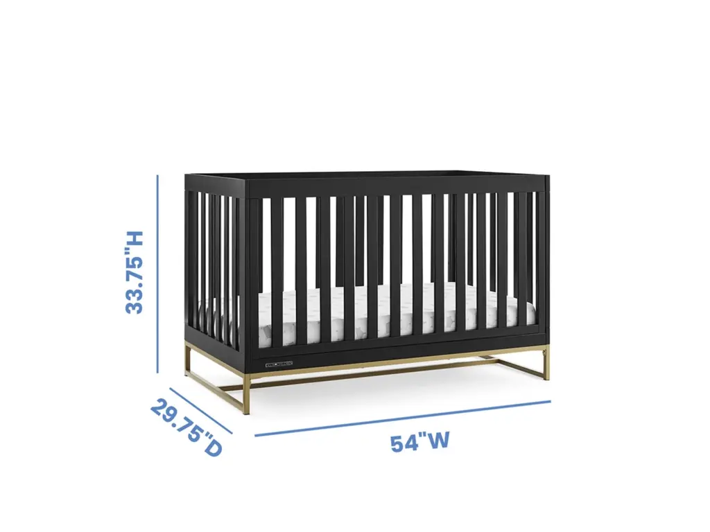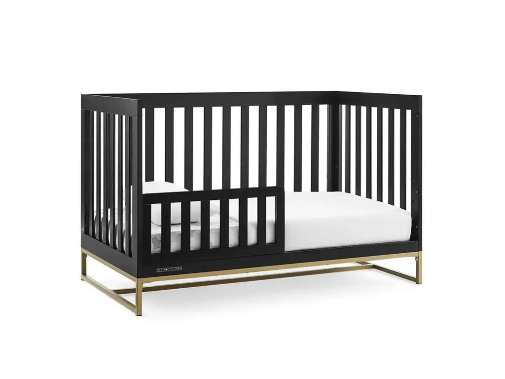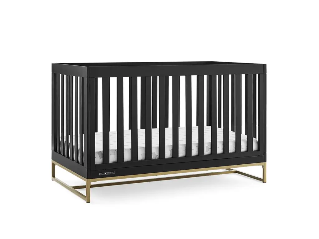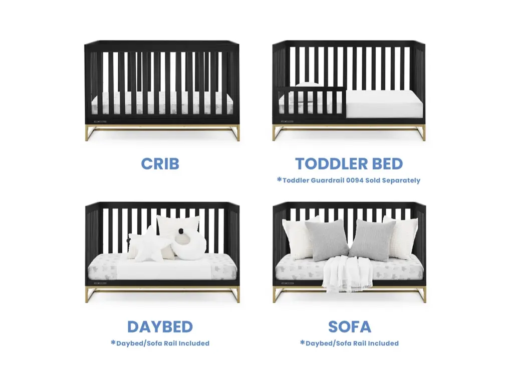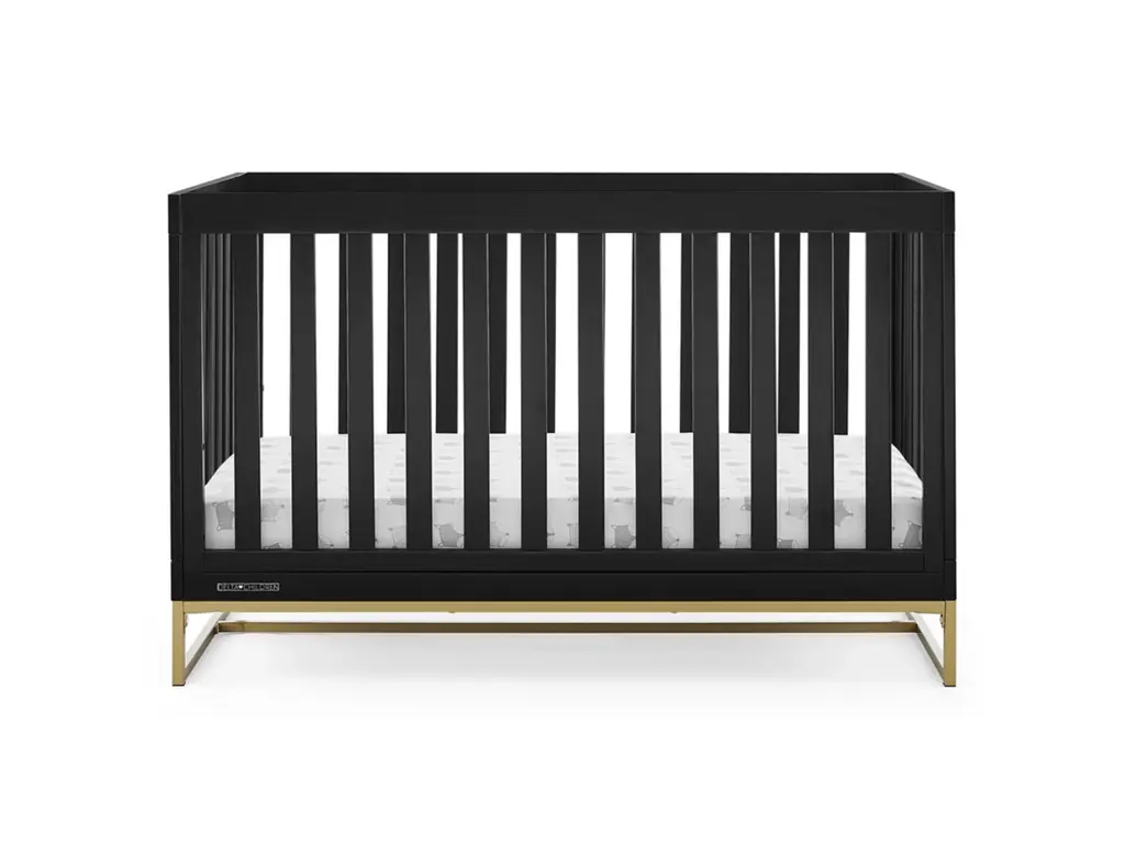 The Jade 4-in-1 Convertible Crib by Delta Children is the new gold standard for modern nurseries with its gorgeous bronze metal base. Stylish and safe, it GREENGUARD Gold Certified, which means it built to contribute to cleaner air for a healthy home. A standout piece for years to come, this crib features an adjustable mattress support that allows you to lower the mattress height as your baby grows. When your child is ready, its versatile design easily adapts from crib to a cozy toddler bed, daybed and sofa (Daybed/Sofa Rail included; Toddler Guardrail #0094 sold separately). The Jade 4-in-1 Convertible Crib by Delta Children is available in Bianca White and Ebony. Coordinates with the Jade Changing Table (sold separately).