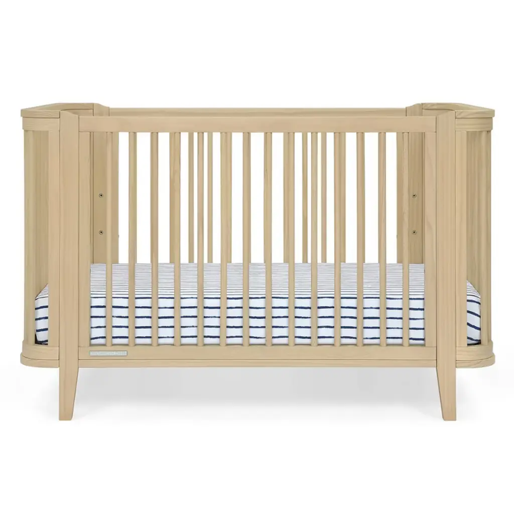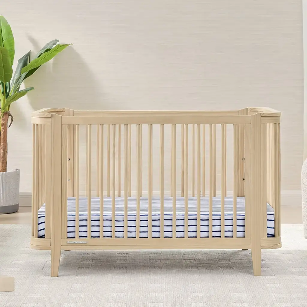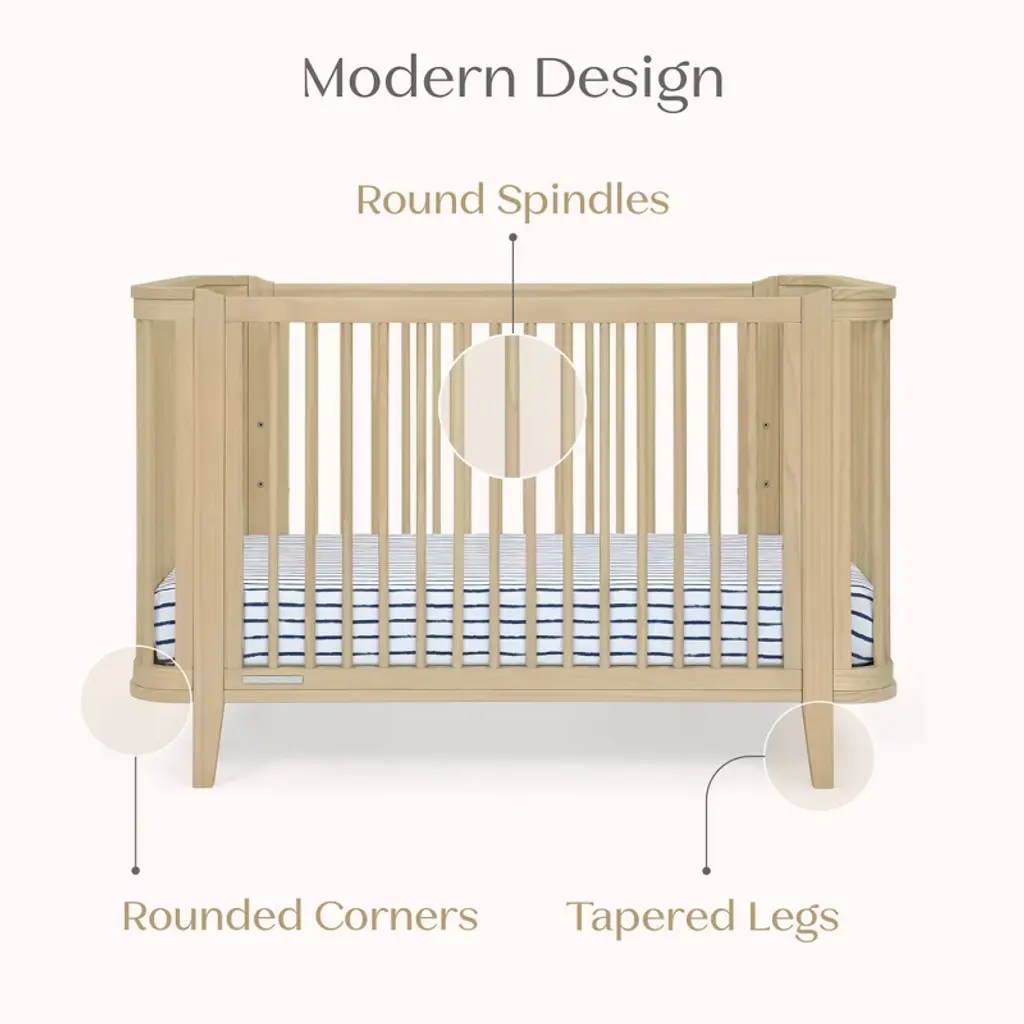 A timeless crib with a modern twist, the Noah 4-in-1 Convertible Crib by Delta Children boasts an organically shaped design with rounded corners, spindles and tapered legs. Crafted to last, it features solid pine construction for support and durability. Plus, it can grow with your little one—simply convert this crib into toddler bed, daybed or sofa when your child is ready (Daybed/Sofa/Toddler Guardrail #W202725 sold separately). With three mattress positions that easily lower as your baby begins to sit, pull up and stand, you can find the height that’s best for them at every stage. Plus, it’s GREENGUARD Gold Certified, which means it’s built to contribute to cleaner air for a healthy home. Crib mattress sold separately.