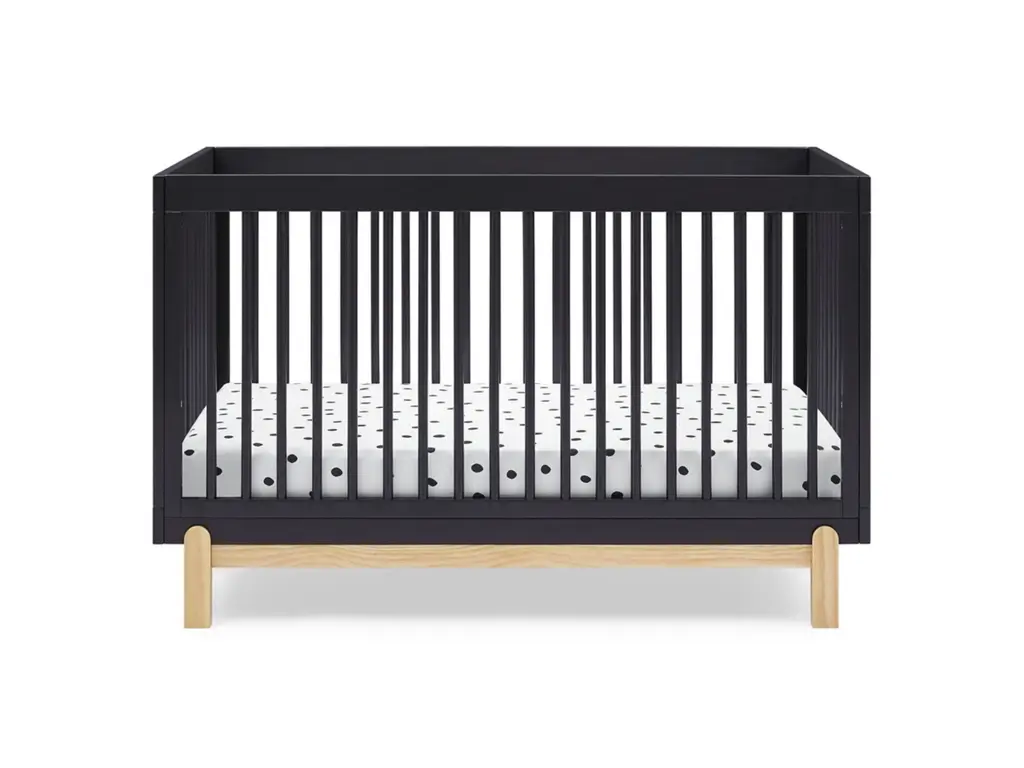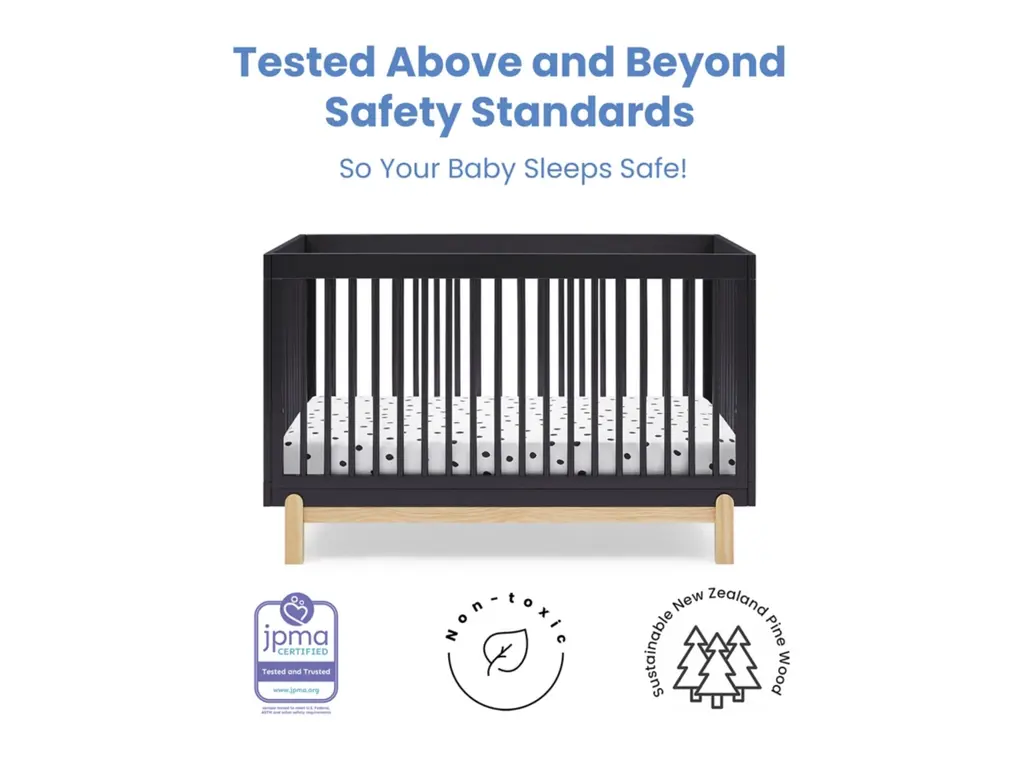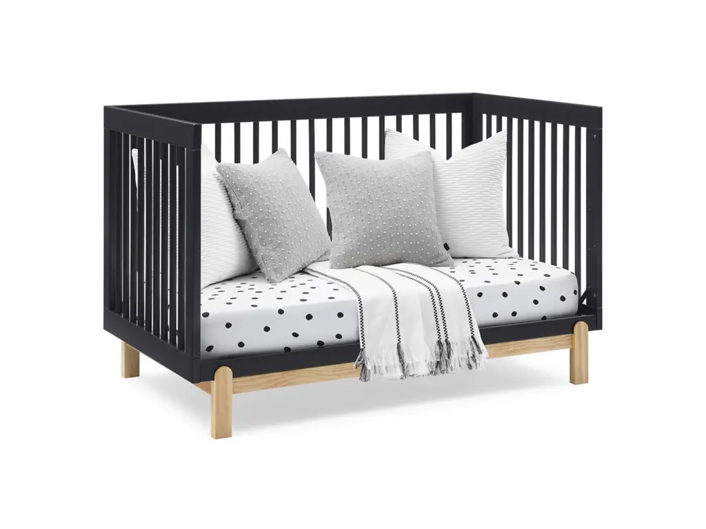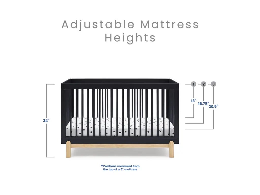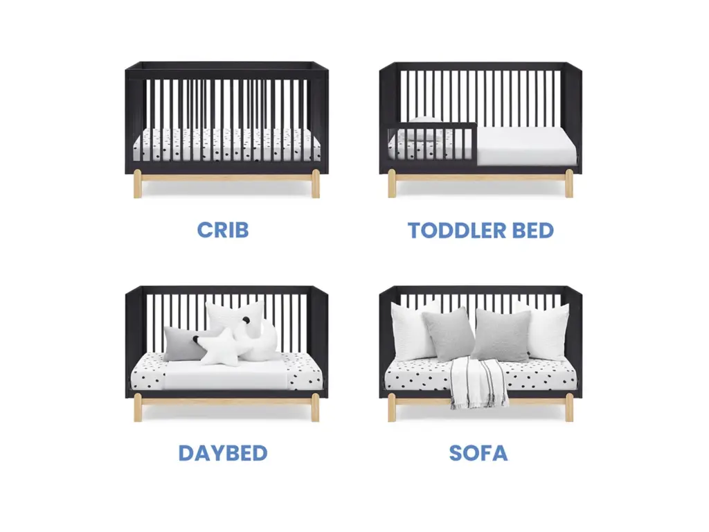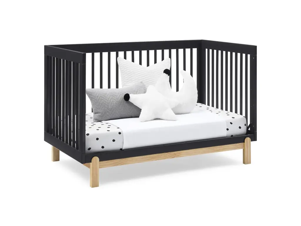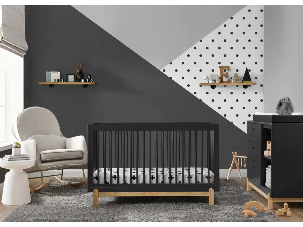The stylish two-tone Poppy 4-in-1 convertible crib will be the centerpiece of your little one’s bedroom for years to come. The warm, natural wood tone of the base and feet is paired with contrasting round spindles to create a modern, sleek style that adapts to all your child’s sleep needs from baby to big kid. The baby crib converts into a toddler bed, daybed and sofa as your child grows. To complete your nursery, pair it with the Poppy 3-drawer dresser with cubbies.