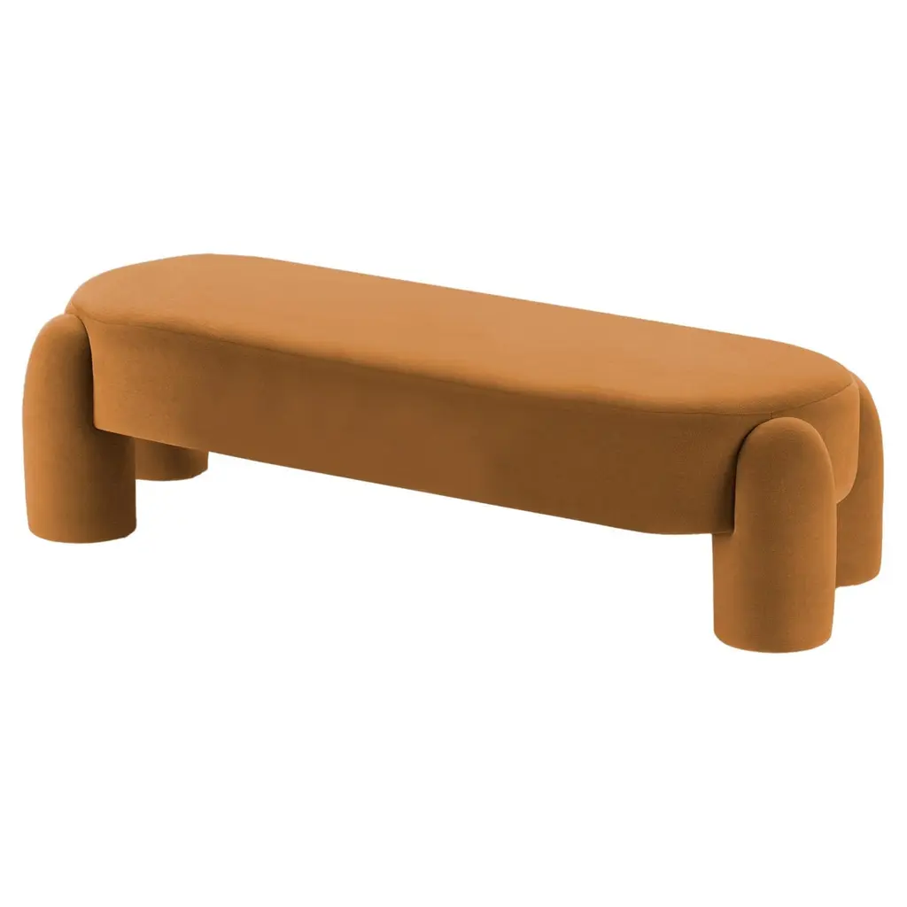 When pure geometry meets soft curves, something sculptural and sensual comes out. A Fine dialogue between oversized legs and clean lines takes place in this piece upholstered in mohair velvet. Marlon is edgy and elegant at the same time, letting the dilemma between ‘contemporary’ versus ‘classical’ fall apart.Here it is presented in a Terracotta Rich Kvadrat. Other colors available.Made to Order. Pietro Franceschini is an architect and designer based in New York and Florence. He applies a contemporary design vocabulary to a classical Italian sensibility. Irreverent and Emotionally impactful, Franceschini's furniture reflects his desire to combine playful energy within sophisticated, timeless elements. A resolutely twenty-first-century designer, he imbues his work with questions about reality, functionality and digital illusion.He was educated in Italy, Portugal and United States. After receiving his B.Arch cum laude from Università degli Studi di Firenze and his M.S.Arch with 1st class honour from Pratt Institute, he collaborated among others with Leeser Architecture in Brooklyn, Claudio Nardi in Florence, Laisné Roussel in Paris and Carlo Ratti Associati in New York. His latest project - PFStudio - was born in 2020 as an interior and furniture design practice.For sales with delivery address within European territories, VAT will be charged additionally to the stated price.Measure: W=150 cm.