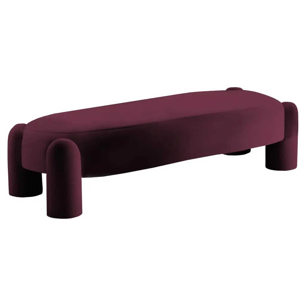 When pure geometry meets soft curves, something sculptural and sensual comes out. A fine dialogue between oversized legs and clean lines takes place in this piece upholstered in mohair velvet. Marlon is edgy and elegant at the same time, letting the dilemma between ‘contemporary’ versus ‘classical’ fall apart.Here it is presented in a Rich Kvadrat in Burgundy. Other colors available.Made to Order. Pietro Franceschini is an architect and designer based in New York and Florence. He applies a contemporary design vocabulary to a classical Italian sensibility. Irreverent and Emotionally impactful, Franceschini's furniture reflects his desire to combine playful energy within sophisticated, timeless elements. A resolutely twenty-first-century designer, he imbues his work with questions about reality, functionality and digital illusion.He was educated in Italy, Portugal and United States. After receiving his B.Arch cum laude from Università degli Studi di Firenze and his M.S.Arch with 1st class honour from Pratt Institute, he collaborated among others with Leeser Architecture in Brooklyn, Claudio Nardi in Florence, Laisné Roussel in Paris and Carlo Ratti Associati in New York. His latest project - PFStudio - was born in 2020 as an interior and furniture design practice.For sales with delivery address within European territories, VAT will be charged additionally to the stated price. Measure: W=150 cm.