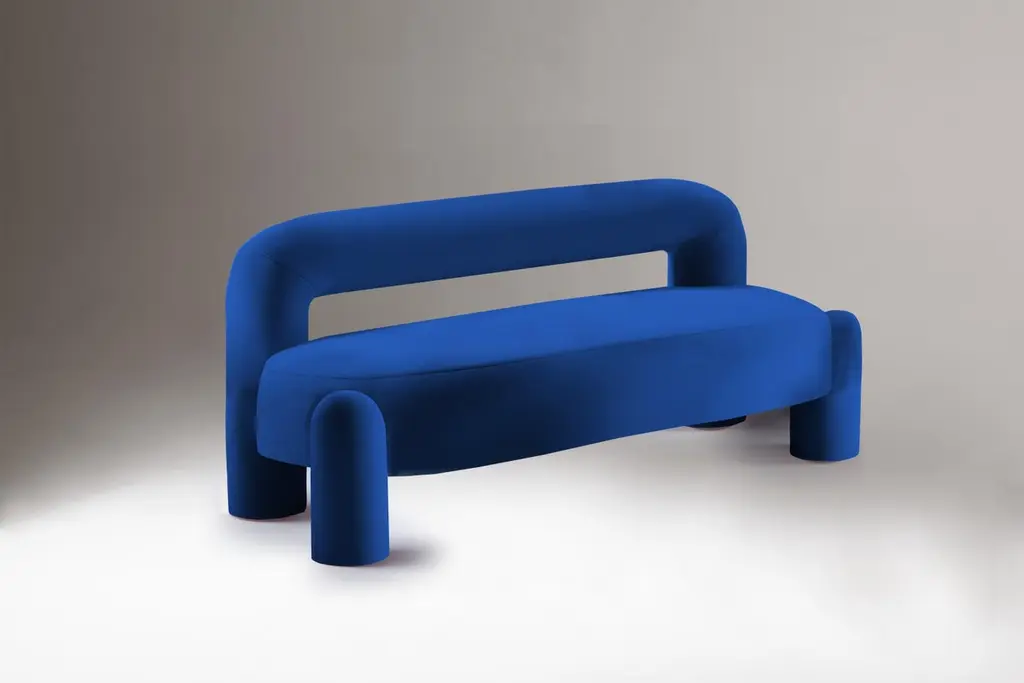 When pure geometry meets soft curves, something sculptural and sensual comes out. A fine dialogue between oversized legs and clean lines takes place in this piece upholstered in mohair velvet. Marlon is edgy and elegant at the same time, letting the dilemma between ‘contemporary’ versus ‘classical’ fall apart.Here it is presented in a Rich Kvadrat in Blue. Other colors available.Made to Order. Pietro Franceschini is an architect and designer based in New York and Florence. He applies a contemporary design vocabulary to a classical Italian sensibility. Irreverent and Emotionally impactful, Franceschini's furniture reflects his desire to combine playful energy within sophisticated, timeless elements. A resolutely twenty-first-century designer, he imbues his work with questions about reality, functionality and digital illusion.He was educated in Italy, Portugal and United States. After receiving his B.Arch cum laude from Università degli Studi di Firenze and his M.S.Arch with 1st class honour from Pratt Institute, he collaborated among others with Leeser Architecture in Brooklyn, Claudio Nardi in Florence, Laisné Roussel in Paris and Carlo Ratti Associati in New York. His latest project - PFStudio - was born in 2020 as an interior and furniture design practice.´For sales with delivery address within European territories, VAT will be charged additionally to the stated priceWidth = 150 cm.