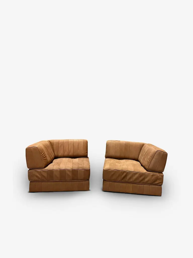 He DS 88 sofa is a stylish and functional piece of furniture, upholstered in a soft natural nappa leather with a patchwork pattern. It is composed of two modular elements that can be configured in a variety of ways. The cushions can be positioned to create a right or left chaise, or removed to create a daybed. The modular design allows you to separate the pieces and use them as two ottomans or coffee tables, making it a versatile addition to any living space. The sleek and elegant design of the DS 88 sofa is sure to enhance the aesthetic of your home while providing comfort and functionality.De Sede is a Swiss furniture company that has built a name for itself in modular furniture pieces, which are made using the highest quality leather upholstery. It originated as a saddler's workshop in Klingnau, Switzerland. The company started by focusing on transforming high-quality leather into seating furniture and over time expanded into creating a wide range of modern, high-end furniture. In 1965, the family-run business became a professional company and rebranded as De Sede AG. All De Sede products are made from the best materials available, ensuring durability and comfort. The company is recognized for its high-quality craftsmanship and commitment to design, which has helped establish it as a leading brand in the furniture industry. De Sede has collaborated with some of the world's finest design minds, enhancing the prestige and individuality of their products. Designers like Santiago Calatrava, Antonella Scarpitta, Stephan Hürlemann, Gordon Guillaumier and Philippe Malouin have all created pieces with the atelier.