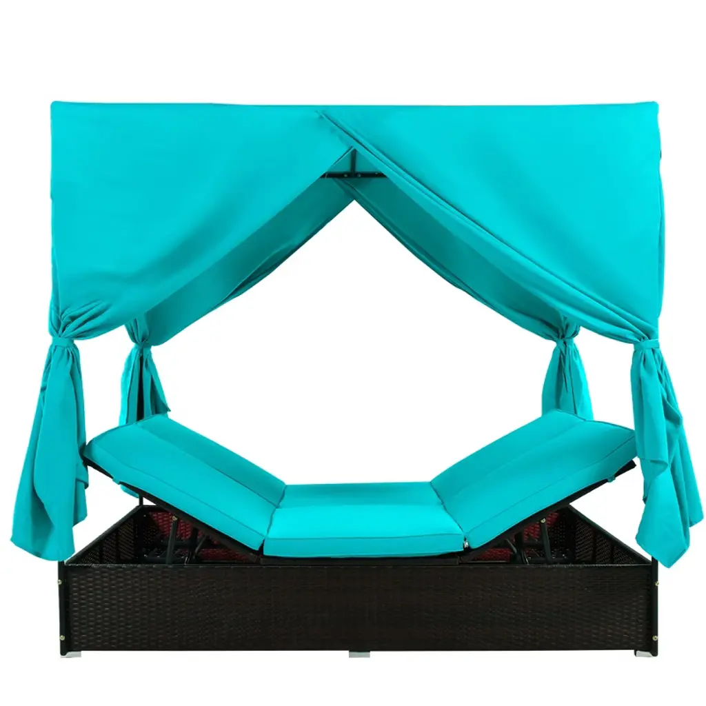 Eljget Patio Wicker Sunbed Daybed With Adjustable Seats, Pe Wicker Poolside Sunbed With Cushions For Backyard, Porch, Blue