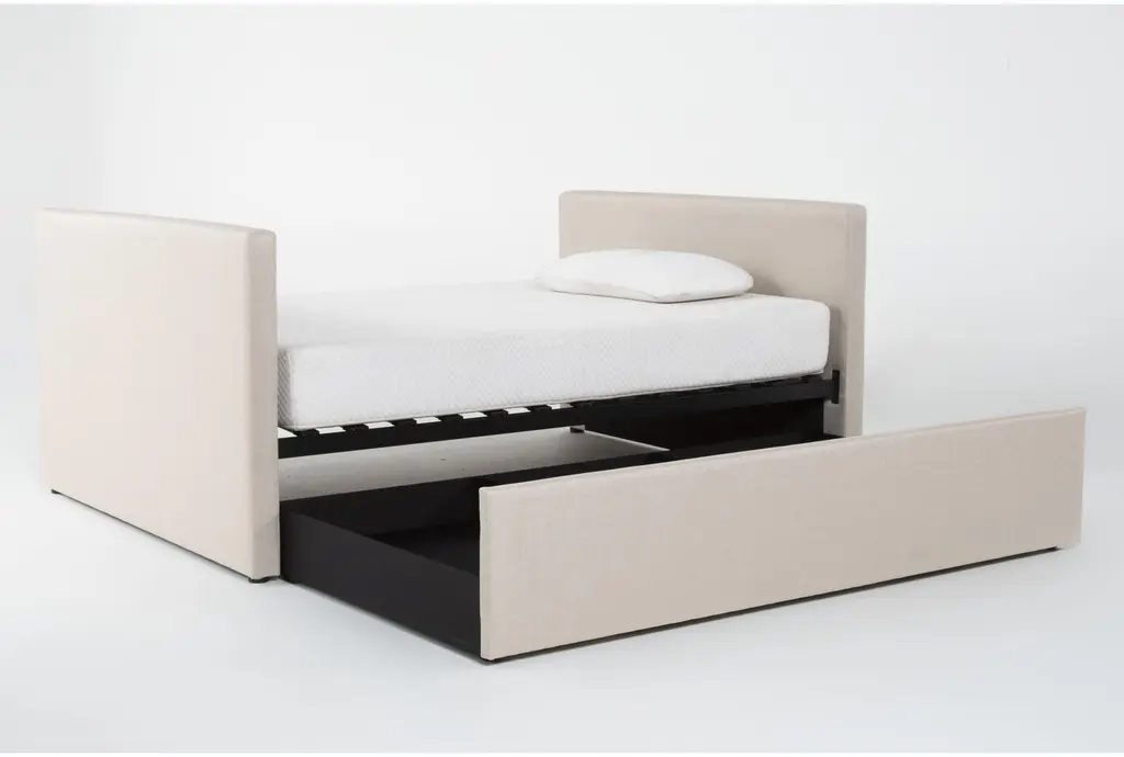 Emmerson Iii Linen Full Backless Upholstered Daybed With Twin Trundle/storage Unit
