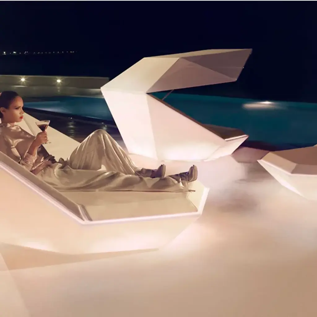 With the Vondom Faz Outdoor Daybed with Parasol, get all the fresh air and relaxation you need without all the sun you don't. The lounger itself is an angular piece that's made out of matte white polyethylene and lined with plush yet crisply tailored vinyl-upholstered cushions. Above, an adjustable translucent Batyline shade protects you from harsh UV rays...and completes the design's oversized clamshell look.