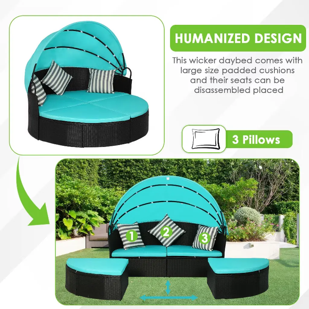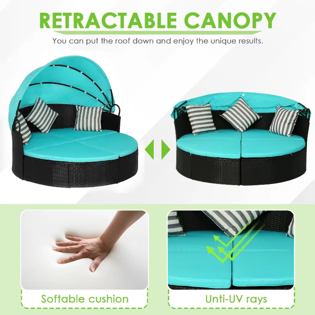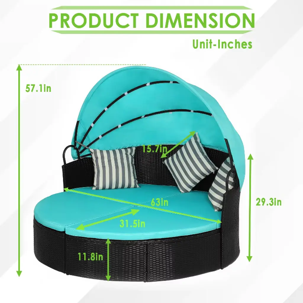 Fdw Modern Outdoor Round Daybed With Retractable Canopy, Blue