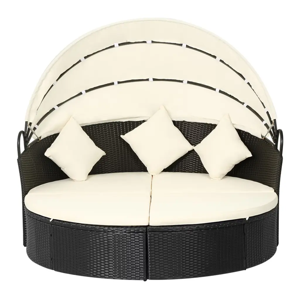 Entertaining neighbors and friends, or simply unwinding in nature. The versatile round sofa design with a retractable canopy creates an inviting space for leisure and holiday enjoyment, making it ideal for both intimate moments and lively outdoor parties. Durable, weather-resistant, and effortlessly stylish, this set transforms any backyard, patio, or poolside area into your personal oasis of comfort and connection.