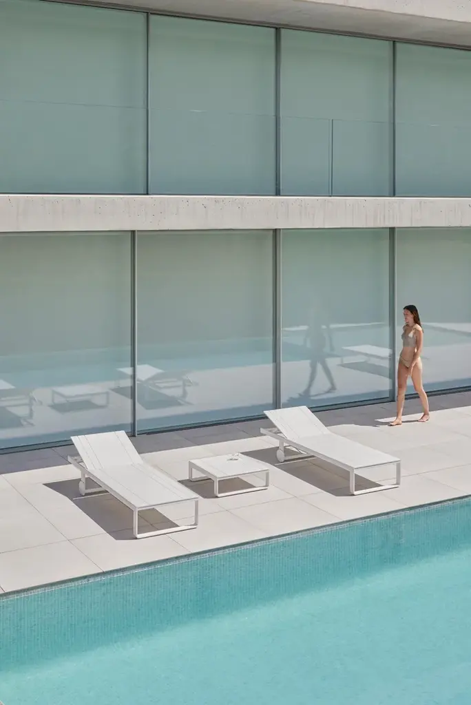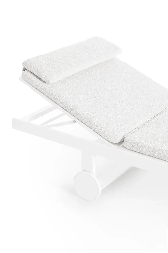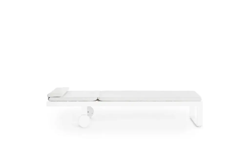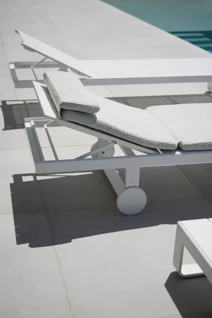 "Flat is a collection of outdoor furniture that we designed for GANDIABLASCO in 2008. Twelve years on, it has been so successful that we’ve continued designing new items. It’s a well-balanced and flexible collection; an essentially formal concept with a light and airy structure in which fabric plays an important part."Made of thermo-lacquered aluminium profiles and 100% recyclable polyethylene. Polyurethane foam rubber covered with water-repellent fabric. Removable fabric cover.Collections colour sample: white, agate grey, cement grey, sand, bronze, blue grey and anthracite.