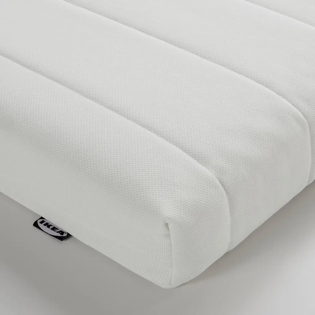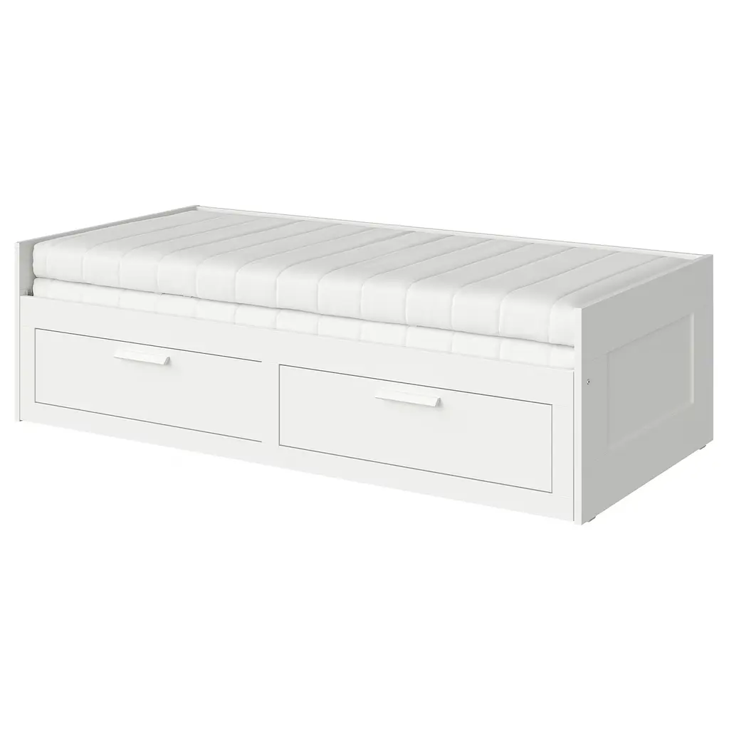FLEKKE Daybed with 2 drawers/2 mattresses - black-brown/Åsvang medium firm Twin. The backrest mounts on the right or the left side of the daybed. Real wood veneer will make this bed age gracefully. You will get all-over support and comfort with the resilient foam mattress. Bed linen sold separately.