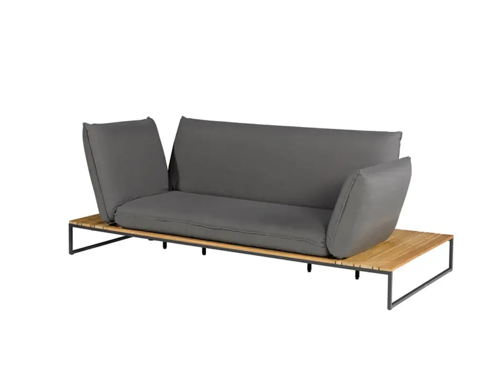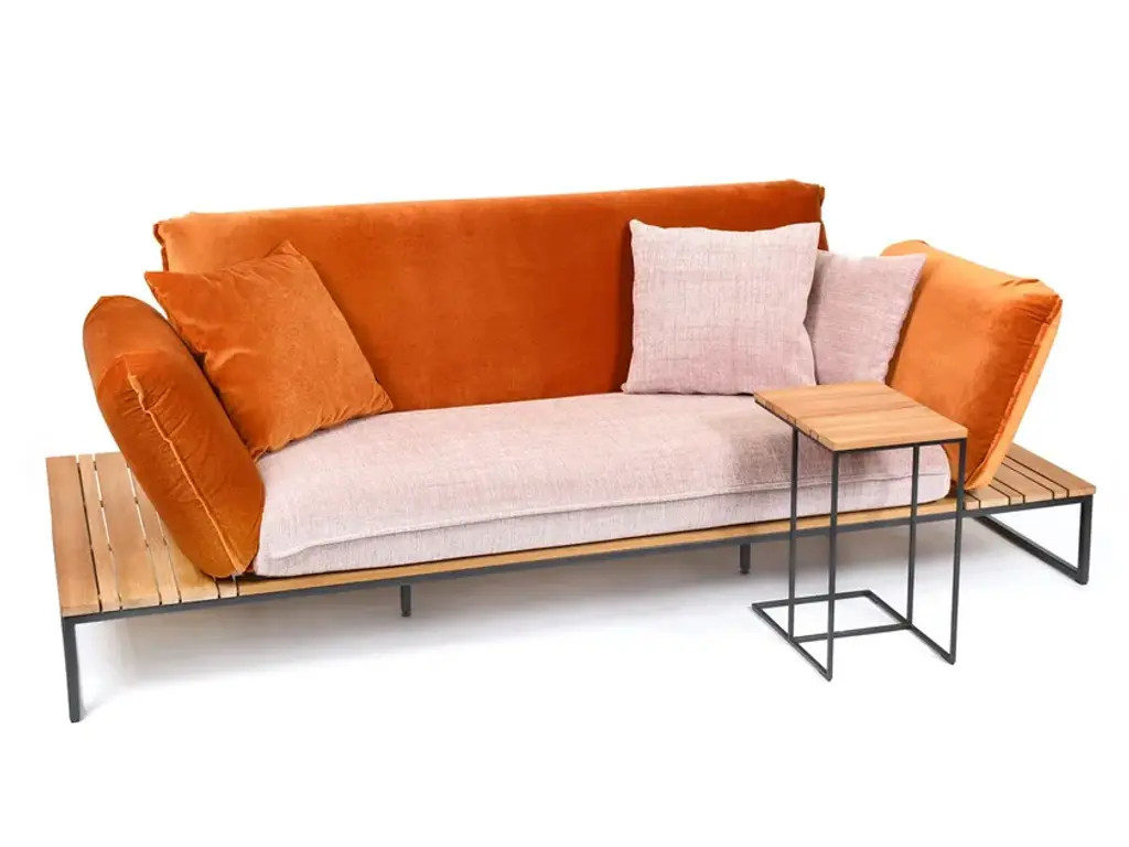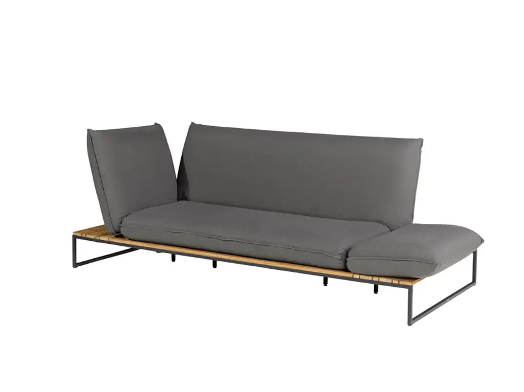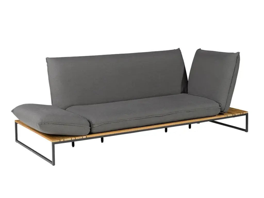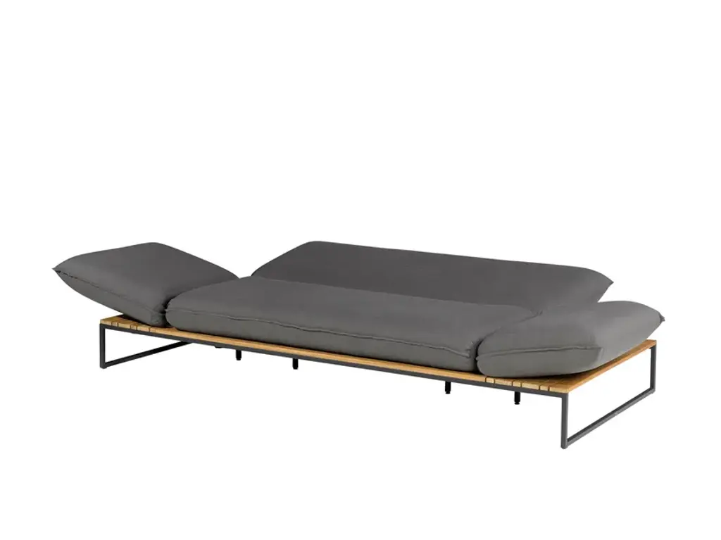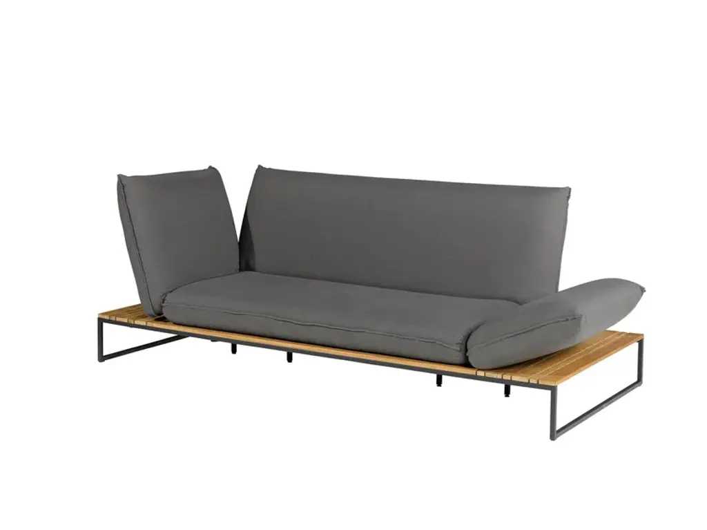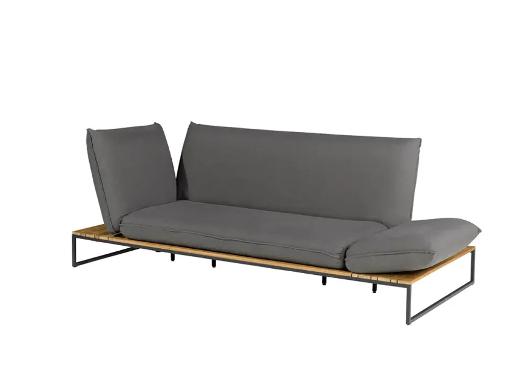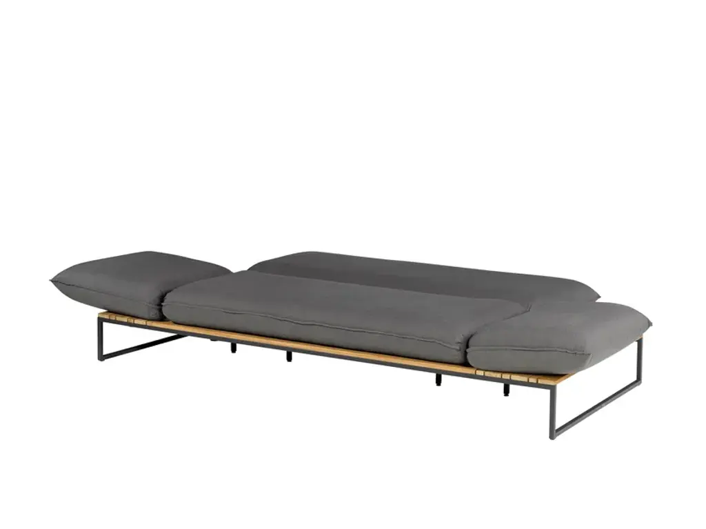 This fascinating and functional lounge with its multi-adjustable arm and backrests makes for a particularly cozy outdoor area. With just a few simple steps, you can create the ideal seating and reclining landscape by folding down incomparable comfort. You can put together your sofa or lounge individually with two armrests of different heights, as Single sofa or as a corner set. For the platform we offer teak strips or 2 different decor from fm-laminat. For planninmg the fischer möbel online planner is very helpfull. Matching side tables, upholstered benches and adjoining tables also offer sufficient storage space and almost endless combination options. Fold down the backrest with many grids.The functional lounge system Flora with its adjustable backrest and side parts turns the outdoor area into a cosy haven. Side tables, upholstery benches and add-on tables offer many shelf surfaces and almost endless combination possibilities. Recreative, upright sitting and relaxing with your feet up – both is made possible with Flora lounge. With just a few hand movements, the sofa turns into a relaxing daybed. Like a flower that opens up, the raised side parts and beack rest can be folded down with many positions. Functionality and design convincing equally with the weatherproof fabrics, stainless steel powder coated and the platform in three different versions. Whether warm teak wood as a unique combination of the material mix or fm-laminate tops in two different colors as easy-care and robust material. Premium Quality Made in Germany