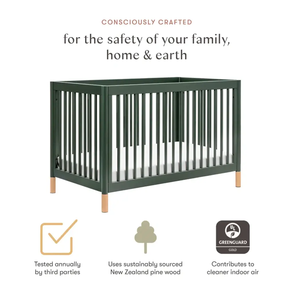 The Gelato 4-in-1 Convertible Crib is a must-have with stylish mamas and papas for a reason! It's refined Scandi inspired design is practical and customizable with removable feet so you can choose from an array of colors to fit any palette. Made with FSC® Certified sustainable New Zealand pine wood and screened for harmful chemicals to ensure it meets GREENGUARD GOLD Certification. An included toddler bed conversion kit allows you to seamlessly convert from crib to toddler bed to daybed with the option to add a full-sized bed conversion.