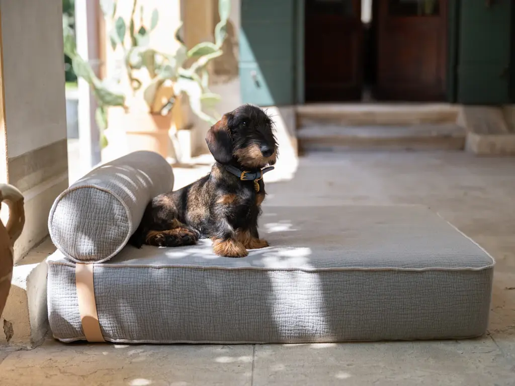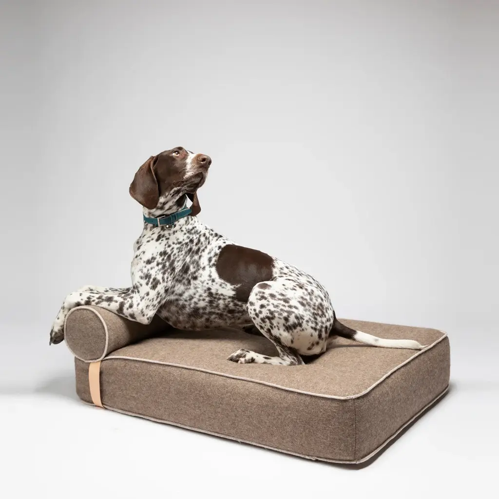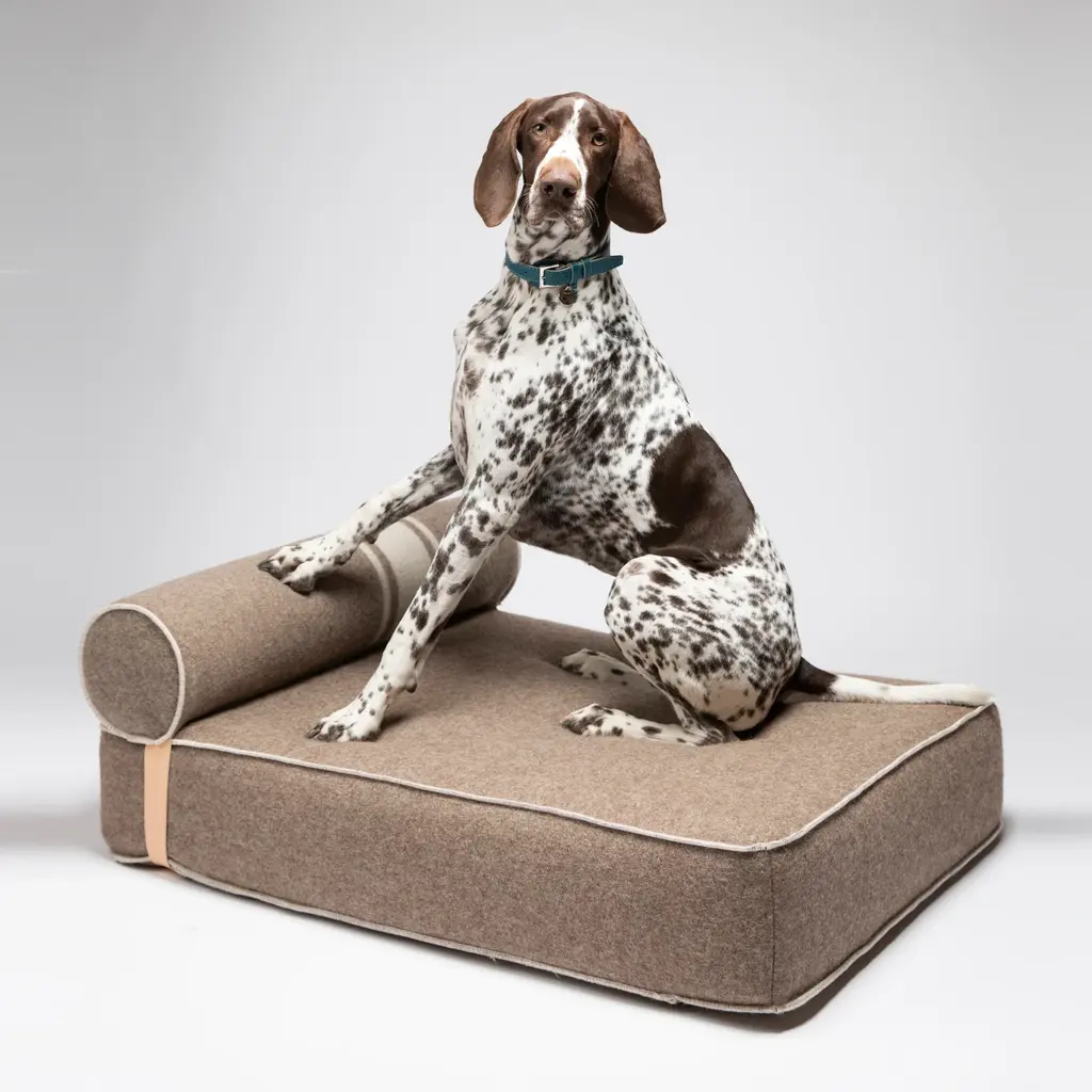 Inspired by designer day beds, the Giampaolo Recycled Wool Daybed from 2.8 Design for Dogs is a luxurious spot for your furry friend to relax. Combining exceptional comfort and support, it’s not just a bed, but a stylish piece of furniture that will complement your décor while providing your dog with top-notch comfort. The inner mattress equipped with a layer of memory foam and an adjustable roller cushion are designed with optimal density to provide adequate support even for large dogs. Highlights