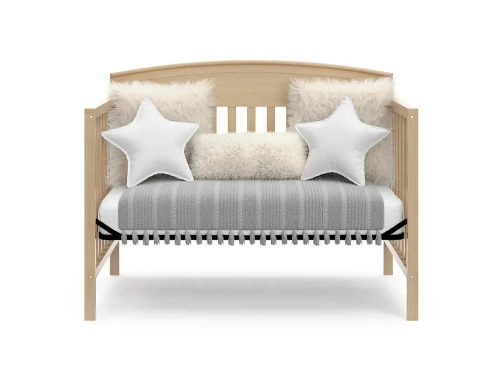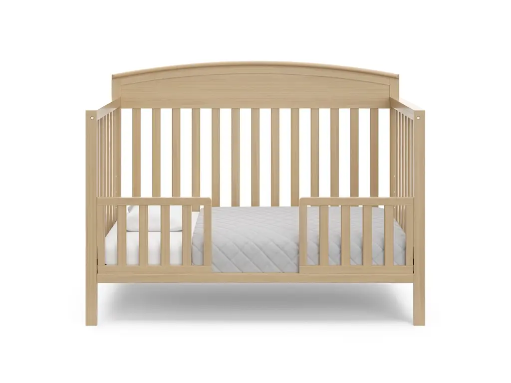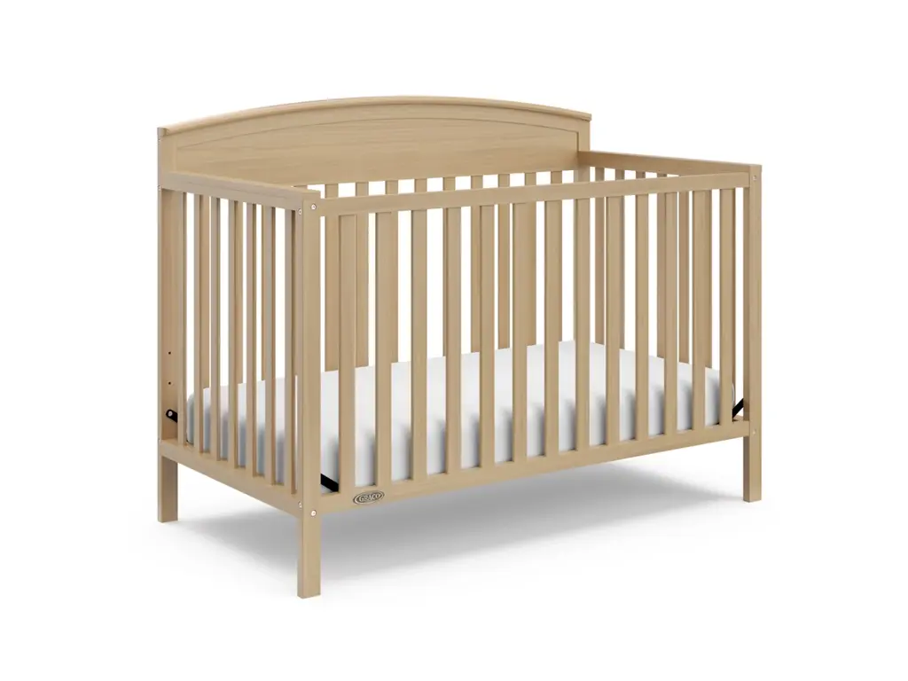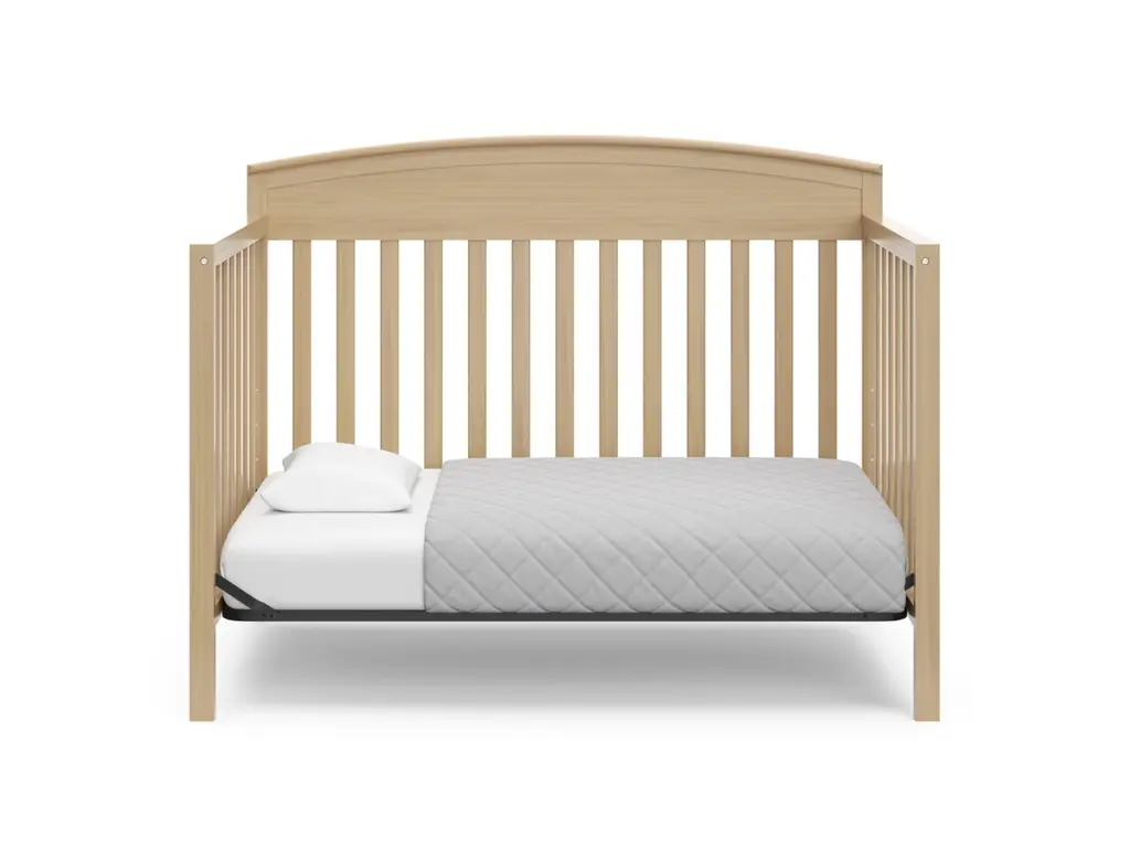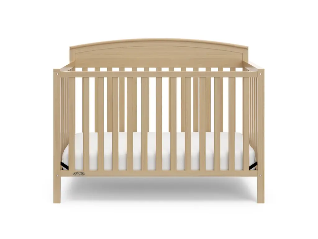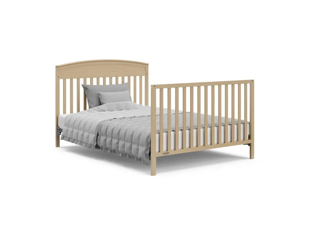 Bring your dream nursery to life with the Graco Benton 5-in-1 Convertible Crib. With its classic, timeless design, the Benton is the perfect addition to any nursery, no matter your style. The Benton is crafted from pine wood, engineered wood, and wood composites, and its applied finish has been tested to meet or exceed the applicable ASTM and CPSIA safety standards. The Benton is GREENGUARD Gold Certified, Certified products are screened for more than 10,000 chemicals and VOCs known to pollute indoor air. Also, the Benton is JPMA Certified, meaning it has been expert tested by third-party, accredited laboratories to meet or exceed all of the applicable category voluntary and mandatory safety standards. Designed to adapt to your growing baby, the Benton is equipped with an adjustable mattress support base with 4 different height options, so the mattress support base's position can be lowered as your child grows [please note, this crib may only be used until your child can easily climb out or is taller than 35 inches (89 cm)]. To support your child's journey from babyhood to toddlerhood and beyond, the Benton can be converted from a crib to a toddler bed [compatible Graco Toddler Safety Guardrail Kit (Slats), 01340-60 Series sold separately)], daybed, and full-size bed with headboard and optional footboard (compatible full-size bed conversion kit sold separately). The Graco Benton 5-in-1 Convertible Crib is designed to accommodate any standard full-size crib & toddler mattress (mattress sold separately, we recommend any Graco crib mattress). Graco is the proud recipient of the Parent Tested Parent Approved (PTPA) Seal of Approval for nursery and children's bedroom furniture, and the 2021-2023 Women's Choice Award for 9 out of 10 Recommended Baby & Kids Furniture. Backed by a 1-year limited manufacturer's warranty. Assembly required. Mattress, guardrail kit, and full-size bed conversion kit each sold separately.