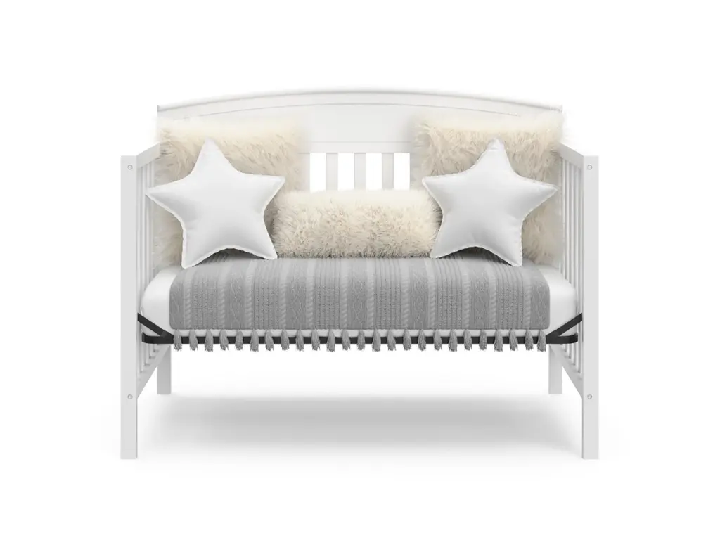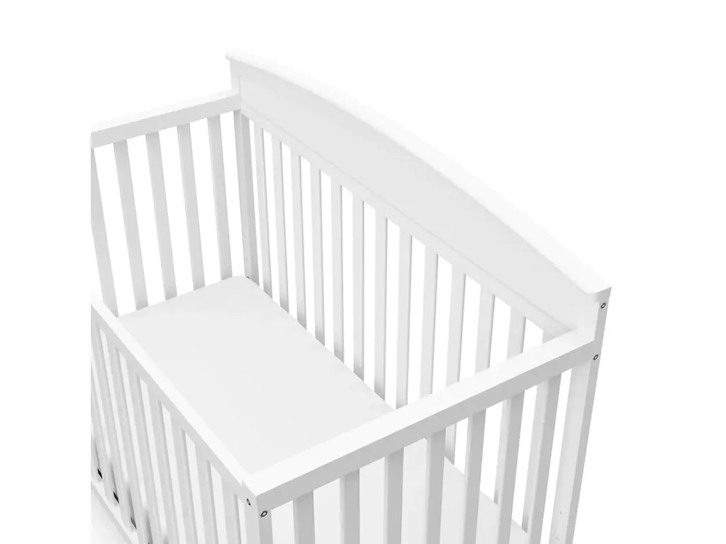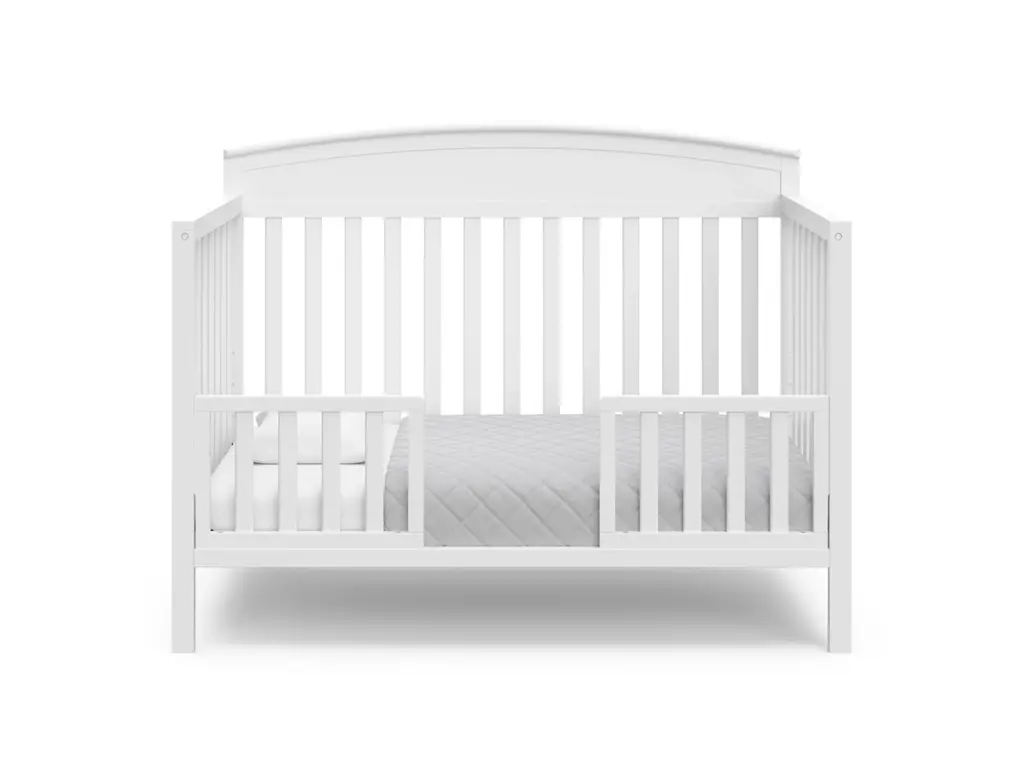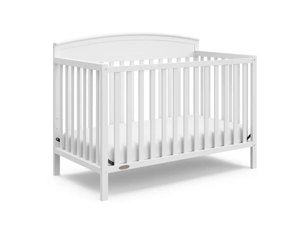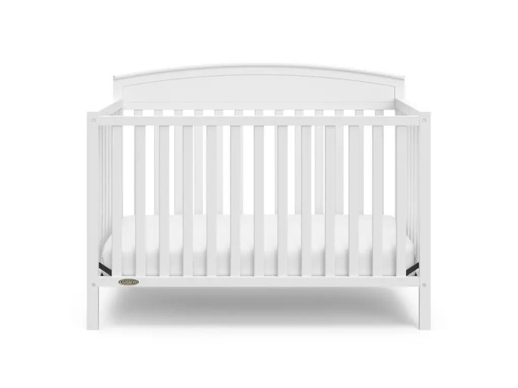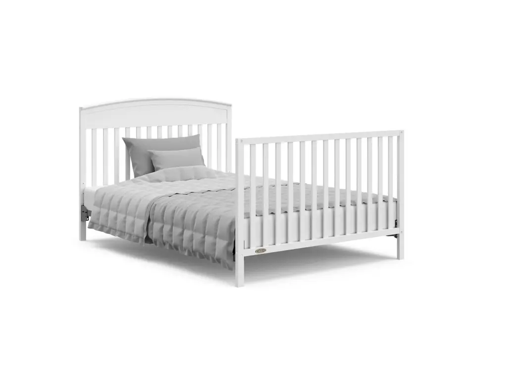 Bring your dream nursery to life with the Graco Benton 5-in-1 Convertible Crib. With its classic, timeless design, the Benton is the perfect addition to any nursery, no matter your style. The Benton is crafted from pine wood, engineered wood, and wood composites, and its applied finish has been tested to meet or exceed the applicable ASTM and CPSIA safety standards. The Benton is GREENGUARD Gold Certified, Certified products are screened for more than 10,000 chemicals and VOCs known to pollute indoor air. Also, the Benton is JPMA Certified, meaning it has been expert tested by third-party, accredited laboratories to meet or exceed all of the applicable category voluntary and mandatory safety standards. Designed to adapt to your growing baby, the Benton is equipped with an adjustable mattress support base with 4 different height options, so the mattress support base's position can be lowered as your child grows [please note, this crib may only be used until your child can easily climb out or is taller than 35 inches (89 cm)]. To support your child's journey from babyhood to toddlerhood and beyond, the Benton can be converted from a crib to a toddler bed [compatible Graco Toddler Safety Guardrail Kit (Slats), 01340-60 Series sold separately)], daybed, and full-size bed with headboard and optional footboard (compatible full-size bed conversion kit sold separately). The Graco Benton 5-in-1 Convertible Crib is designed to accommodate any standard full-size crib & toddler mattress (mattress sold separately, we recommend any Graco crib mattress). Graco is the proud recipient of the Parent Tested Parent Approved (PTPA) Seal of Approval for nursery and children's bedroom furniture, and the 2021-2023 Women's Choice Award for 9 out of 10 Recommended Baby & Kids Furniture. Backed by a 1-year limited manufacturer's warranty. Assembly required. Mattress, guardrail kit, and full-size bed conversion kit each sold separately.