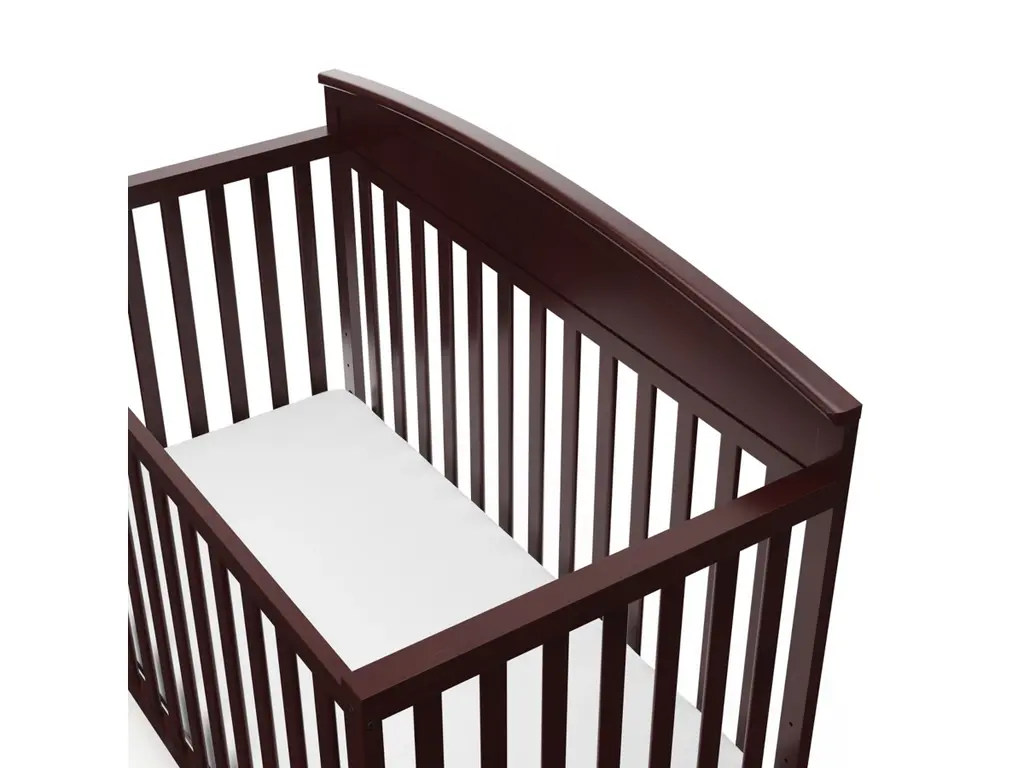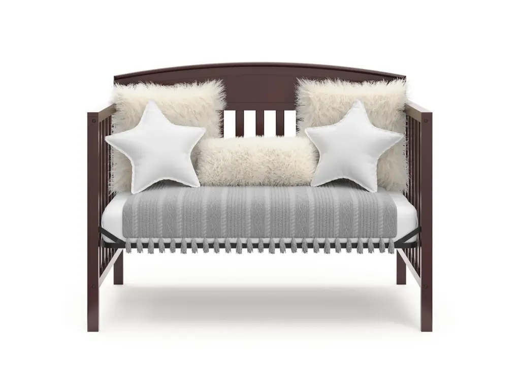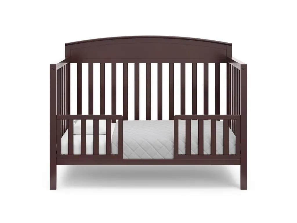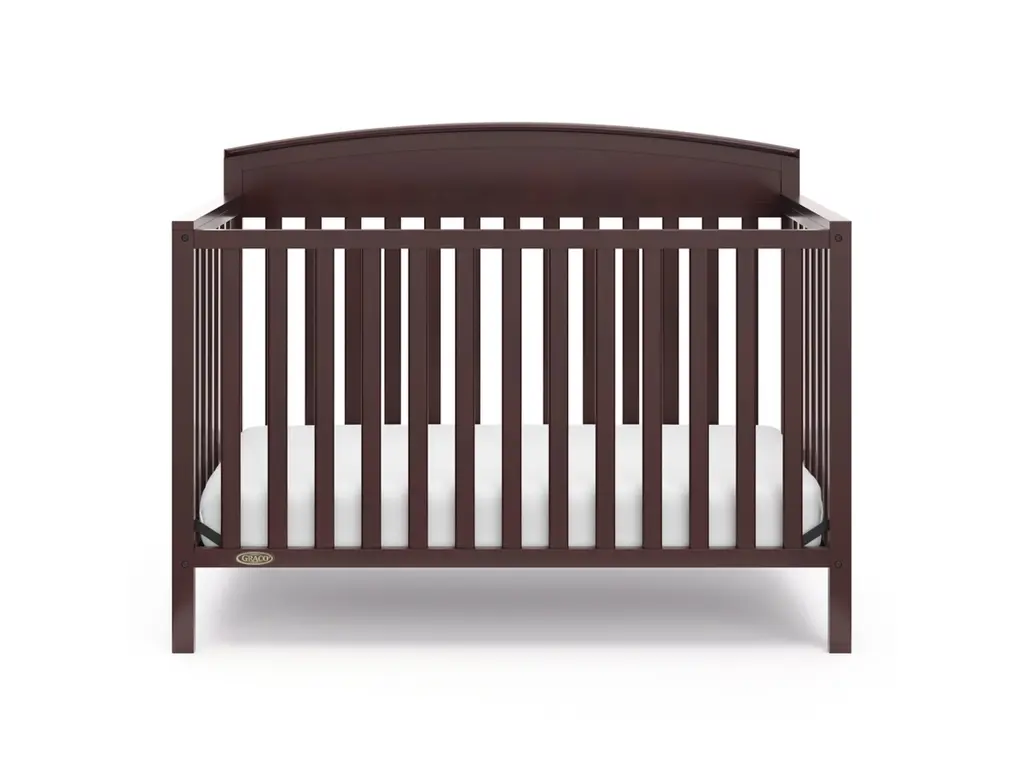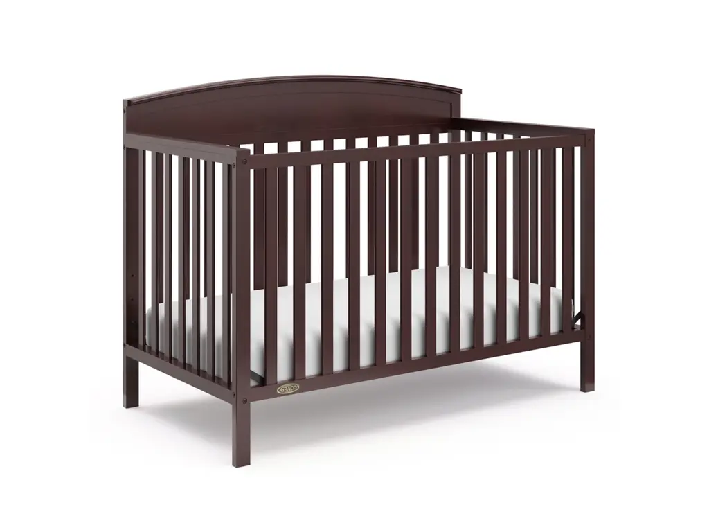 Bring your dream nursery to life with the Graco Benton 5-in-1 Convertible Crib. With its classic, timeless design, the Benton is the perfect addition to any nursery, no matter your style. The Benton is crafted from pine wood, engineered wood, and wood composites, and its applied finish has been tested to meet or exceed the applicable ASTM and CPSIA safety standards. The Benton is GREENGUARD Gold Certified, Certified products are screened for more than 10,000 chemicals and VOCs known to pollute indoor air. Also, the Benton is JPMA Certified, meaning it has been expert tested by third-party, accredited laboratories to meet or exceed all of the applicable category voluntary and mandatory safety standards. Designed to adapt to your growing baby, the Benton is equipped with an adjustable mattress support base with 4 different height options, so the mattress support base's position can be lowered as your child grows [please note, this crib may only be used until your child can easily climb out or is taller than 35 inches (89 cm)]. To support your child's journey from babyhood to toddlerhood and beyond, the Benton can be converted from a crib to a toddler bed [compatible Graco Toddler Safety Guardrail Kit (Slats), 01340-60 Series sold separately)], daybed, and full-size bed with headboard and optional footboard (compatible full-size bed conversion kit sold separately). The Graco Benton 5-in-1 Convertible Crib is designed to accommodate any standard full-size crib & toddler mattress (mattress sold separately, we recommend any Graco crib mattress). Graco is the proud recipient of the Parent Tested Parent Approved (PTPA) Seal of Approval for nursery and children's bedroom furniture, and the 2021-2023 Women's Choice Award for 9 out of 10 Recommended Baby & Kids Furniture. Backed by a 1-year limited manufacturer's warranty. Assembly required. Mattress, guardrail kit, and full-size bed conversion kit each sold separately.