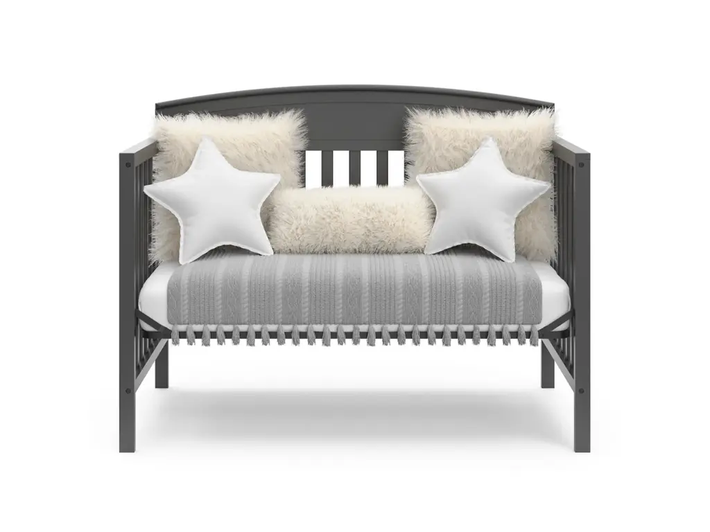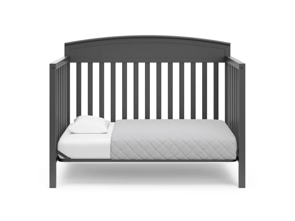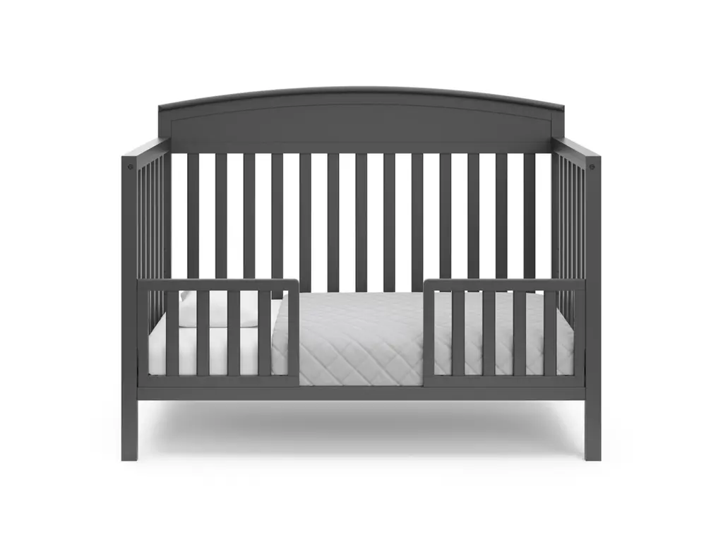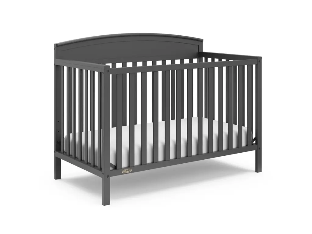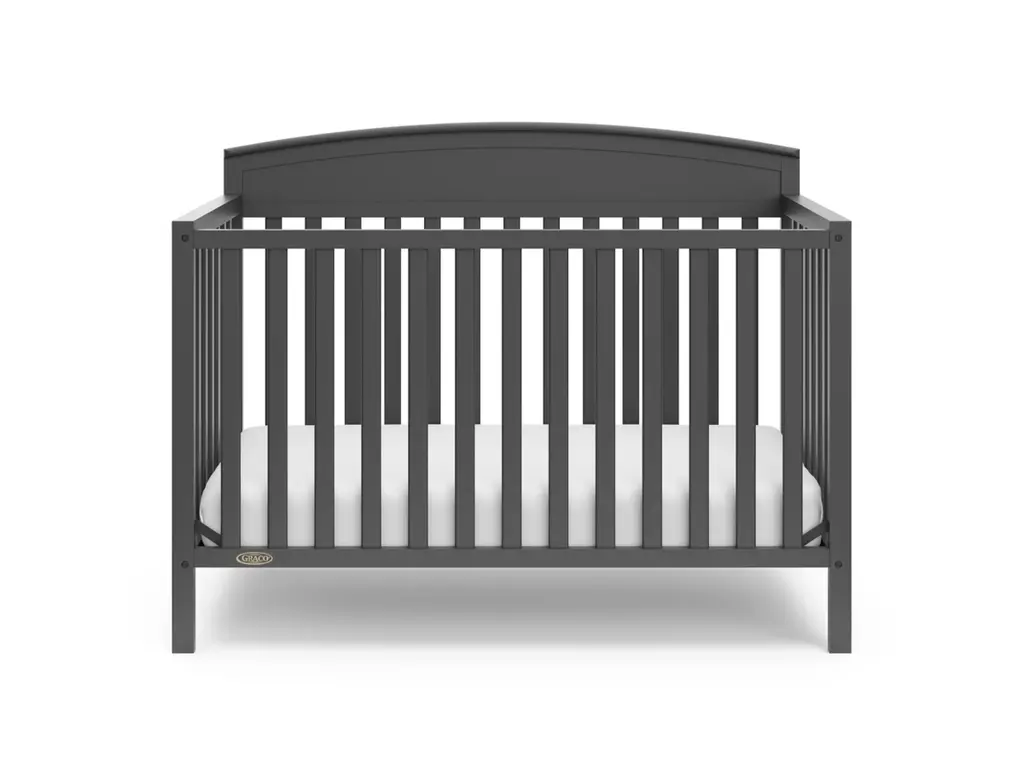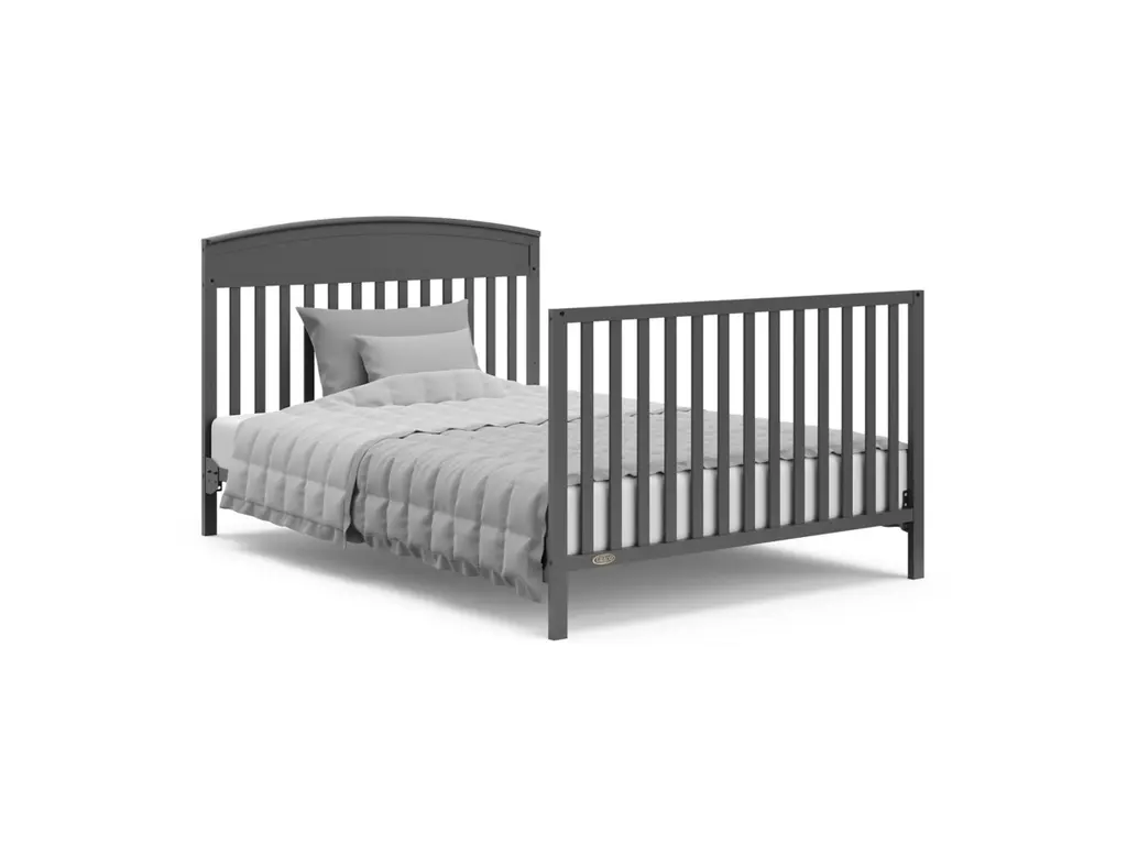 Bring your dream nursery to life with the Graco Benton 5-in-1 Convertible Crib. With its classic, timeless design, the Benton is the perfect addition to any nursery, no matter your style. The Benton is crafted from pine wood, engineered wood, and wood composites, and its applied finish has been tested to meet or exceed the applicable ASTM and CPSIA safety standards. The Benton is GREENGUARD Gold Certified, Certified products are screened for more than 10,000 chemicals and VOCs known to pollute indoor air. Also, the Benton is JPMA Certified, meaning it has been expert tested by third-party, accredited laboratories to meet or exceed all of the applicable category voluntary and mandatory safety standards. Designed to adapt to your growing baby, the Benton is equipped with an adjustable mattress support base with 4 different height options, so the mattress support base's position can be lowered as your child grows [please note, this crib may only be used until your child can easily climb out or is taller than 35 inches (89 cm)]. To support your child's journey from babyhood to toddlerhood and beyond, the Benton can be converted from a crib to a toddler bed [compatible Graco Toddler Safety Guardrail Kit (Slats), 01340-60 Series sold separately)], daybed, and full-size bed with headboard and optional footboard (compatible full-size bed conversion kit sold separately). The Graco Benton 5-in-1 Convertible Crib is designed to accommodate any standard full-size crib & toddler mattress (mattress sold separately, we recommend any Graco crib mattress). Graco is the proud recipient of the Parent Tested Parent Approved (PTPA) Seal of Approval for nursery and children's bedroom furniture, and the 2021-2023 Women's Choice Award for 9 out of 10 Recommended Baby & Kids Furniture. Backed by a 1-year limited manufacturer's warranty. Assembly required. Mattress, guardrail kit, and full-size bed conversion kit each sold separately.