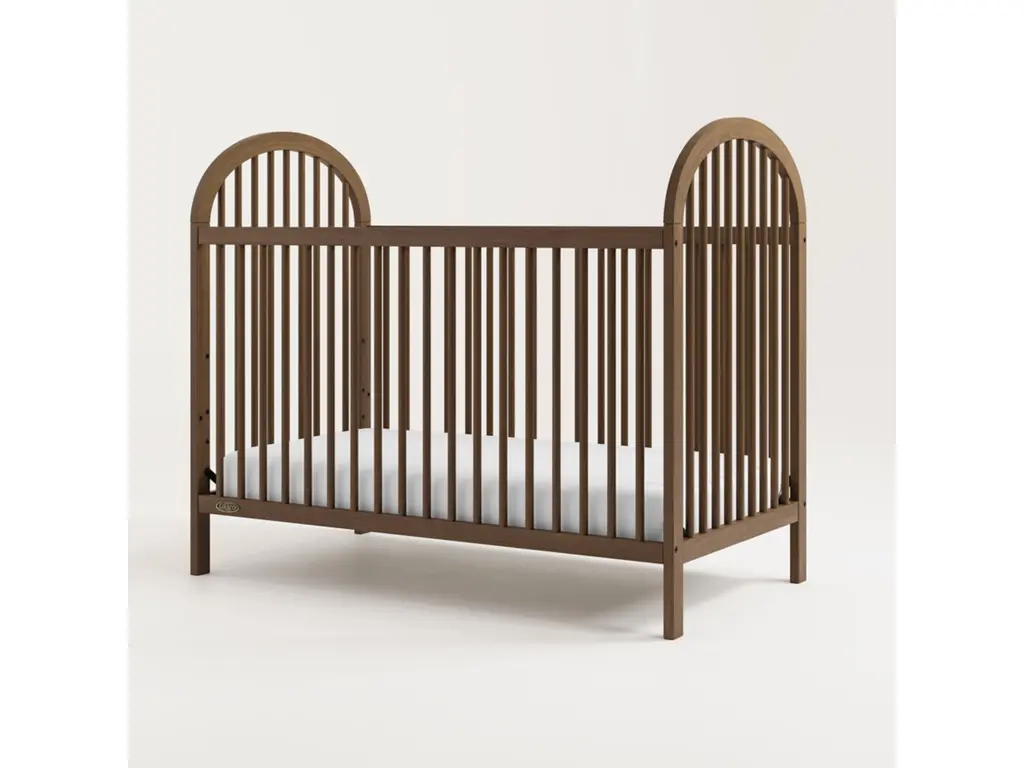 Introducing the Graco Olivia 3-in-1 Convertible Crib. With its clean lines, stylish curves, rounded details, and easy-to-match, arched design, the Olivia is the perfect addition to any nursery – no matter your style. The Olivia is crafted from pine wood, and its applied finish has been tested to meet or exceed the applicable ASTM and CPSIA safety standards. The Graco Olivia 3-in-1 Convertible Crib is GREENGUARD Gold Certified – certified products are screened for more than 10,000 chemicals and VOCs known to pollute indoor air. The Olivia is JPMA Certified — meaning it’s been expert tested by third-party, accredited laboratories to meet or exceed all of the applicable category voluntary and mandatory safety standards. Designed to adapt to your growing baby, the Olivia is equipped with an adjustable mattress support base with 4 different height options so the mattress support base’s position can be lowered as your child grows [please note, this crib may only be used until your child can easily climb out or is taller than 35 inches (89 cm)]. To support your child’s journey from babyhood to toddlerhood (and beyond), the Olivia is able to be converted from a crib to a toddler bed (compatible toddler guardrail kit sold separately), and daybed. The Graco Olivia 3-in-1 Convertible Crib is designed to accommodate any standard full-size crib & toddler mattress (mattress sold separately – we recommend any Graco crib mattress). Graco is the proud recipient of the Parent Tested Parent Approved (PTPA) Seal of Approval for nursery and children’s bedroom furniture, and the 2023 Women's Choice Award for 9 out of 10 Recommended Baby & Kids Furniture. Backed by a 1-year limited manufacturer’s warranty. Assembly required. Mattress and toddler safety guardrail kit each sold separately.