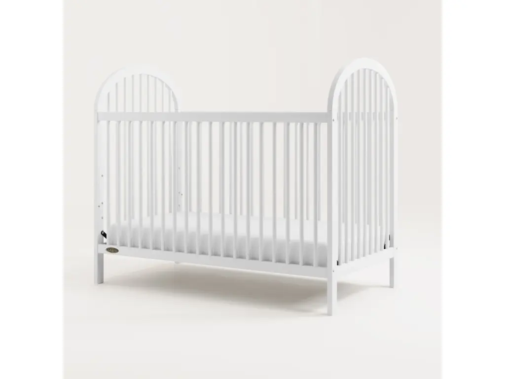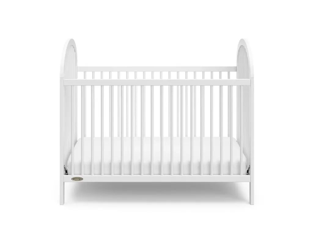 Introducing the Graco Olivia 3-in-1 Convertible Crib. With its clean lines, stylish curves, rounded details, and easy-to-match, arched design, the Olivia is the perfect addition to any nursery – no matter your style. The Olivia is crafted from pine wood, and its applied finish has been tested to meet or exceed the applicable ASTM and CPSIA safety standards. The Graco Olivia 3-in-1 Convertible Crib is GREENGUARD Gold Certified – certified products are screened for more than 10,000 chemicals and VOCs known to pollute indoor air. The Olivia is JPMA Certified — meaning it’s been expert tested by third-party, accredited laboratories to meet or exceed all of the applicable category voluntary and mandatory safety standards. Designed to adapt to your growing baby, the Olivia is equipped with an adjustable mattress support base with 4 different height options so the mattress support base’s position can be lowered as your child grows [please note, this crib may only be used until your child can easily climb out or is taller than 35 inches (89 cm)]. To support your child’s journey from babyhood to toddlerhood (and beyond), the Olivia is able to be converted from a crib to a toddler bed (compatible toddler guardrail kit sold separately), and daybed. The Graco Olivia 3-in-1 Convertible Crib is designed to accommodate any standard full-size crib & toddler mattress (mattress sold separately – we recommend any Graco crib mattress). Graco is the proud recipient of the Parent Tested Parent Approved (PTPA) Seal of Approval for nursery and children’s bedroom furniture, and the 2023 Women's Choice Award for 9 out of 10 Recommended Baby & Kids Furniture. Backed by a 1-year limited manufacturer’s warranty. Assembly required. Mattress and toddler safety guardrail kit each sold separately.