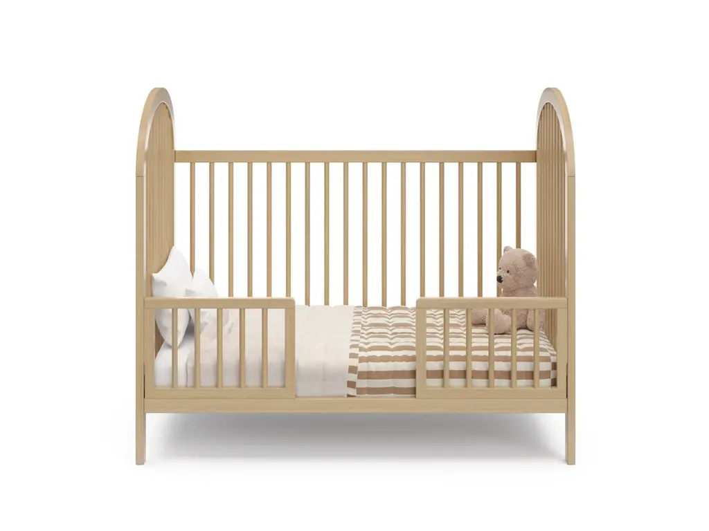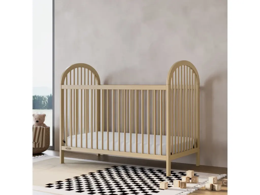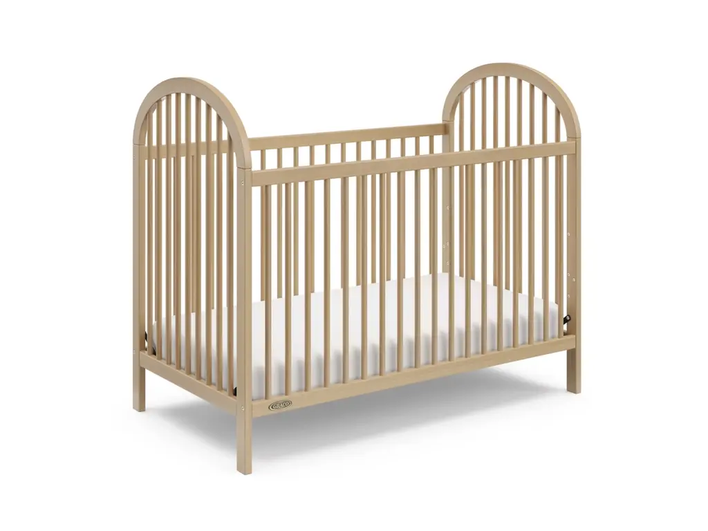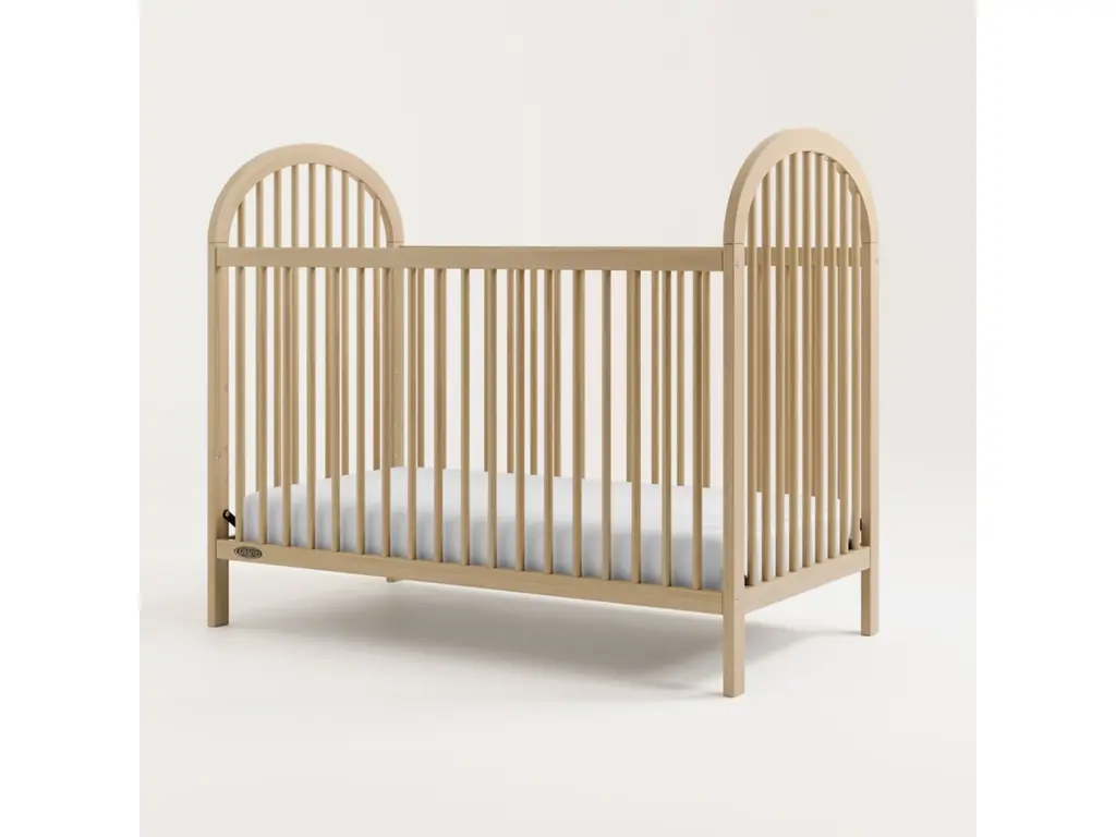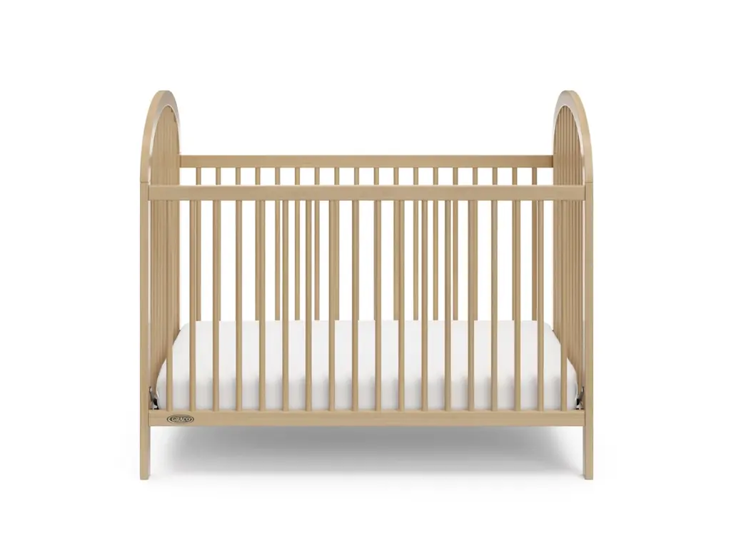 Introducing the Graco Olivia 3-in-1 Convertible Crib. With its clean lines, stylish curves, rounded details, and easy-to-match, arched design, the Olivia is the perfect addition to any nursery – no matter your style. The Olivia is crafted from pine wood, and its applied finish has been tested to meet or exceed the applicable ASTM and CPSIA safety standards. The Graco Olivia 3-in-1 Convertible Crib is GREENGUARD Gold Certified – certified products are screened for more than 10,000 chemicals and VOCs known to pollute indoor air. The Olivia is JPMA Certified — meaning it’s been expert tested by third-party, accredited laboratories to meet or exceed all of the applicable category voluntary and mandatory safety standards. Designed to adapt to your growing baby, the Olivia is equipped with an adjustable mattress support base with 4 different height options so the mattress support base’s position can be lowered as your child grows [please note, this crib may only be used until your child can easily climb out or is taller than 35 inches (89 cm)]. To support your child’s journey from babyhood to toddlerhood (and beyond), the Olivia is able to be converted from a crib to a toddler bed (compatible toddler guardrail kit sold separately), and daybed. The Graco Olivia 3-in-1 Convertible Crib is designed to accommodate any standard full-size crib & toddler mattress (mattress sold separately – we recommend any Graco crib mattress). Graco is the proud recipient of the Parent Tested Parent Approved (PTPA) Seal of Approval for nursery and children’s bedroom furniture, and the 2023 Women's Choice Award for 9 out of 10 Recommended Baby & Kids Furniture. Backed by a 1-year limited manufacturer’s warranty. Assembly required. Mattress and toddler safety guardrail kit each sold separately.