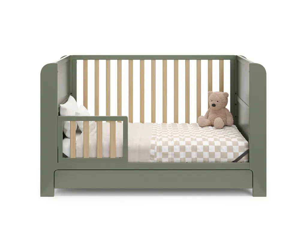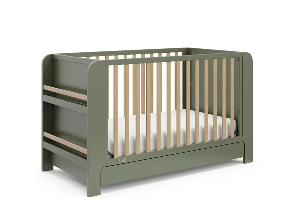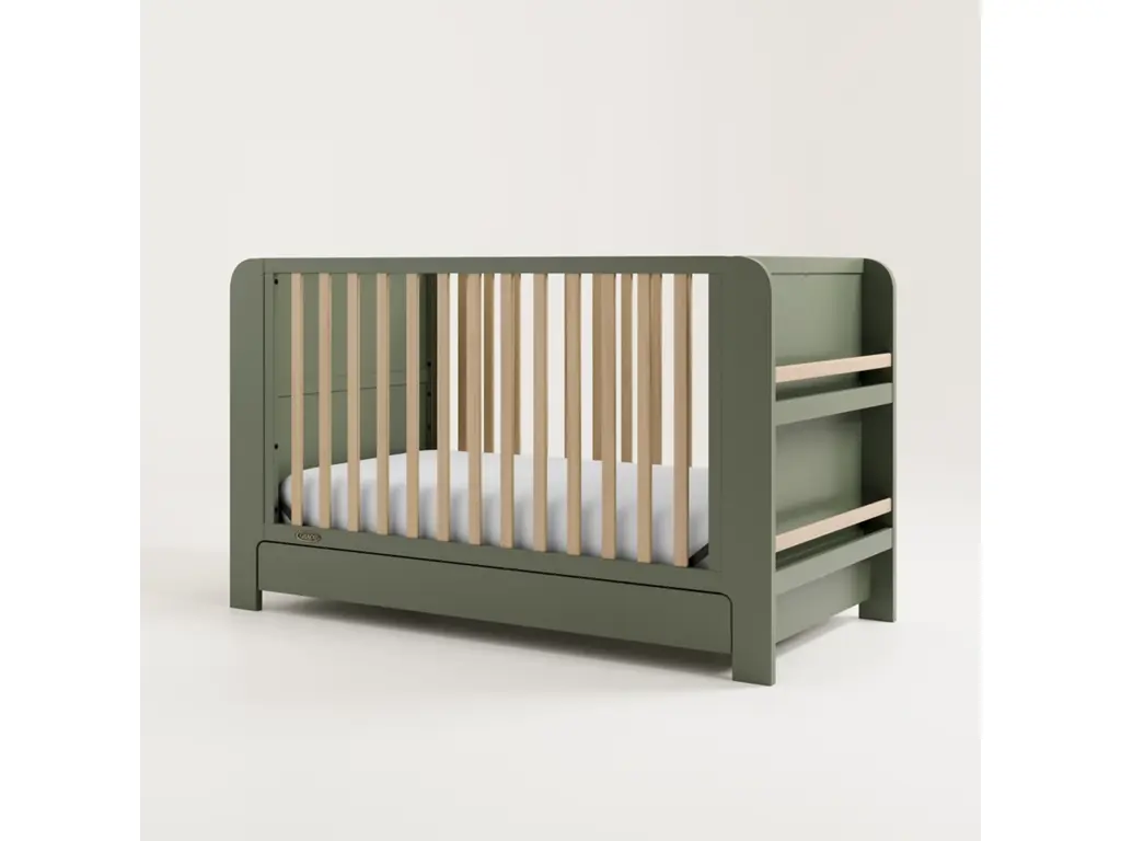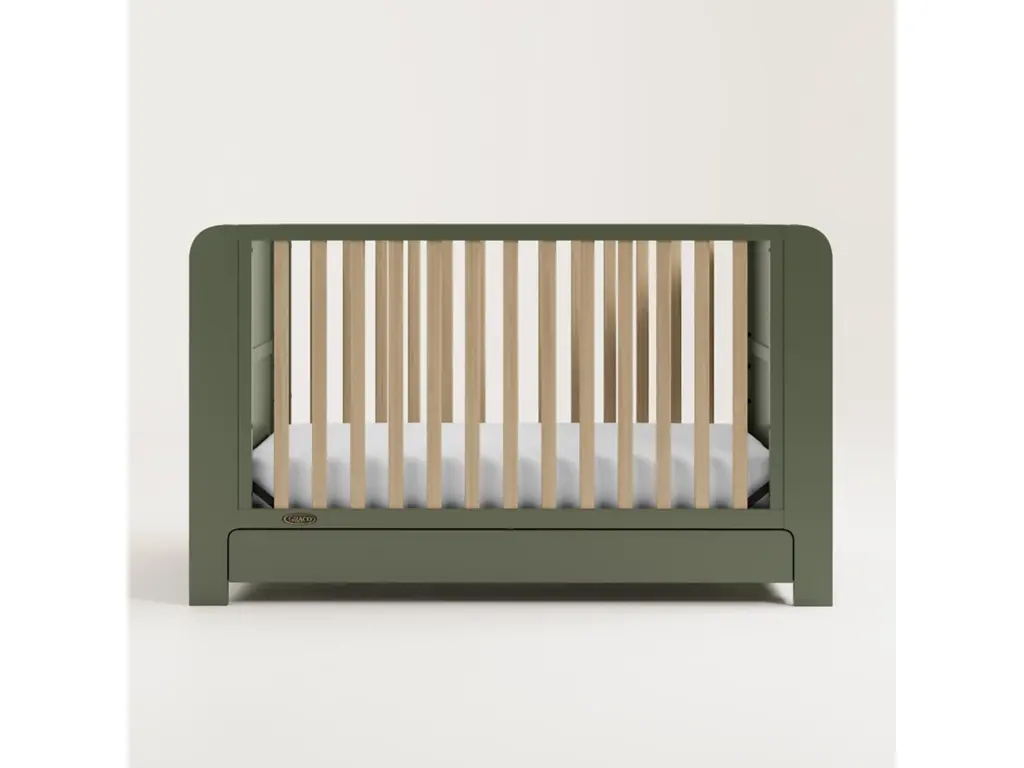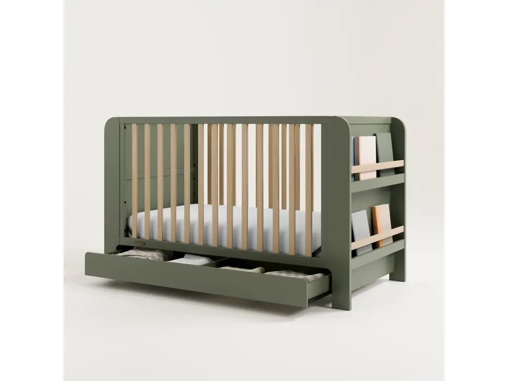 Transform your nursery with the Graco Read-with-Me 4-in-1 Convertible Crib with Drawer, featuring two detachable bookshelves that adapt to your child's growing stages. These versatile bookshelves continue to organize your little one's books even after they outgrow the crib, making it a lasting addition to any space. Crafted from pine wood and engineered wood, the Read-with-Me meets ASTM and CPSIA safety standards, providing peace of mind for parents. JPMA Certified, it undergoes rigorous testing by accredited laboratories to exceed safety standards. Engineered to grow with your baby, the Read-with-Me features an adjustable mattress support base with four height options, ensuring safety and comfort as your child grows up to 35 inches in height or can climb out independently. The Read-with-Me transitions seamlessly from crib to toddler bed (toddler guardrail kit sold separately), and to a daybed. The detachable side panels cleverly convert into functional bookshelves, offering ongoing storage and organizational benefits. Accommodating any standard full-size crib and toddler mattress (sold separately – Graco crib mattresses recommended), the Read-with-Me includes a 1-year limited manufacturer’s warranty for added peace of mind. Assembly is required.