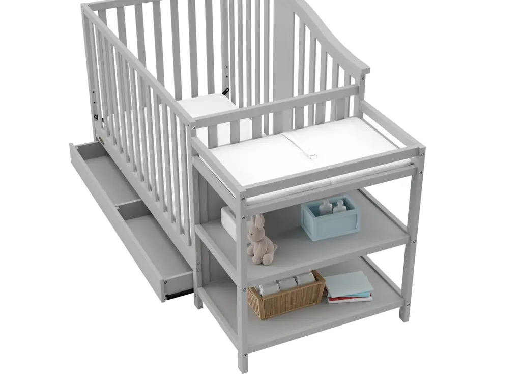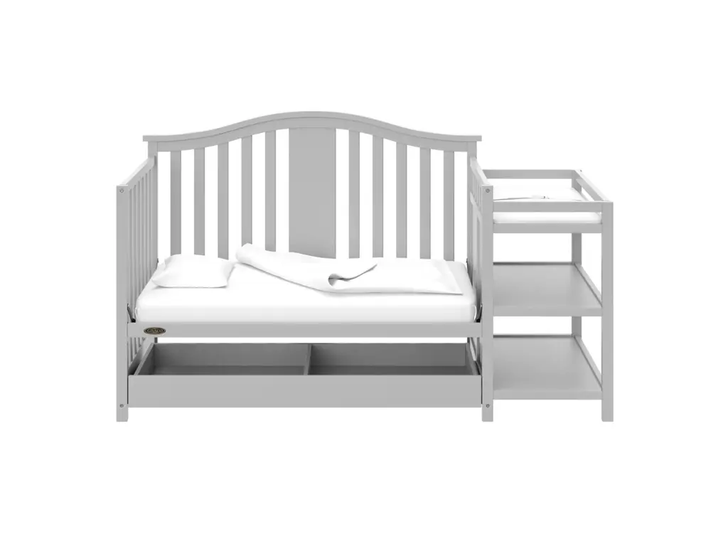 The Graco Solano 4-in-1 Convertible Crib & Changer with Drawer combines the classic, family-favorite, best-selling Solano design with the added convenience of a space-savings storage drawer and attached changing table with shelves. Designed to adapt to your growing baby, the Graco Solano is equipped with a 3-position adjustable mattress support base, and can convert into a daybed, toddler bed, and full-size bed. The Solano is JPMA certified, meets or exceeds all applicable federal safety standards, and is backed by a 1-year limited manufacturer's warranty.