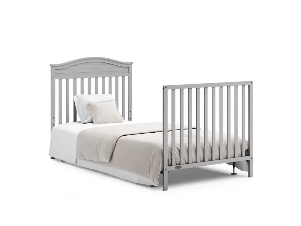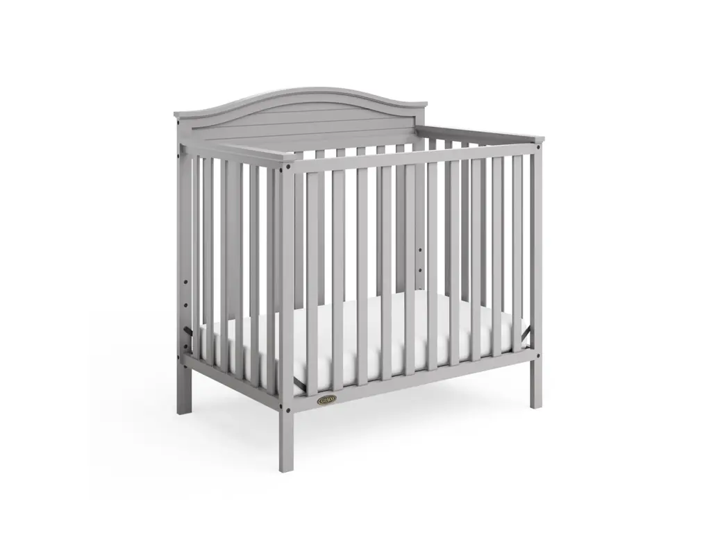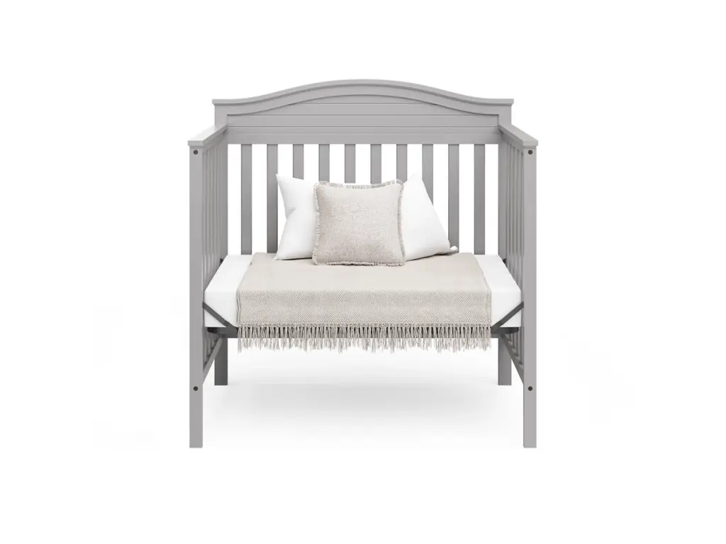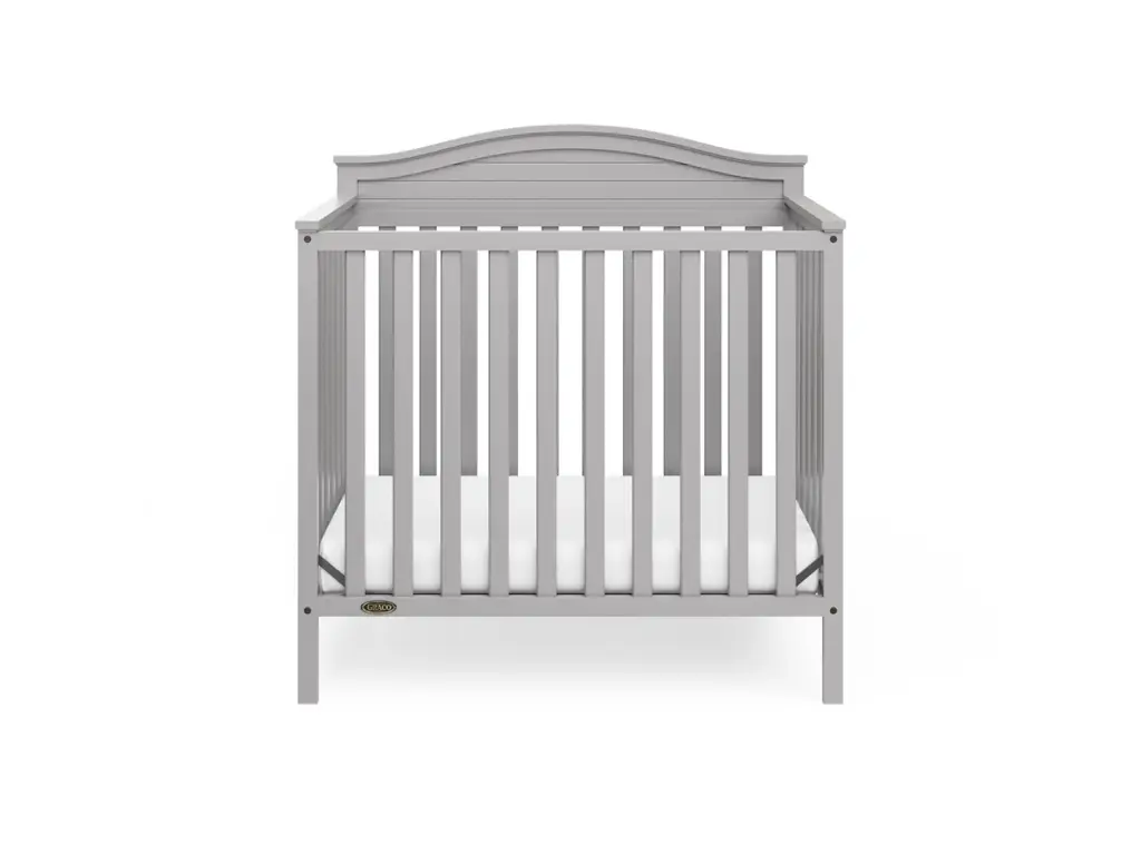 The Graco Stella 4-in-1 Convertible Mini Crib with Bonus Mattress is the perfect choice for parents that have less space to work with, but still want to "go big" on features and function. With its beautiful bell-curve headboard and shiplap texturing, the Graco Stella is the perfect choice to get your nursery started. Unlike other mini cribs that only come with a mattress pad, the Graco Stella includes a JPMA Certified, premium 2.50-inch thick foam mattress with water-resistant cover and breathable core. The Graco Stella is constructed with high-quality pine wood and composites, sturdy and durable to last from babyhood throughout childhood, and beyond. Designed to adapt to your growing child from the baby stage throughout childhood, the Graco Stella 4-in-1 Convertible Mini Crib has an adjustable mattress support base with 4 different height options. Also, the Stella easily converts from a capable mini crib to a daybed, and twin bed with headboard and optional footboard (compatible with Graco Crib Conversion Kit). For a safer sleep, the Graco Stella is JPMA Certified, and expert-tested to meet all applicable federal safety standards. Rest easy knowing that the Graco Stella is backed by a 1-year limited warranty, and supportive customer care. 2.50-inch thick foam crib mattress included. Graco Crib Conversion Kit each sold separately. Exclusively from Graco, 2023 Women's Choice Award Winner for 9 out of 10 Customer Recommended Baby & Kids Furniture.
