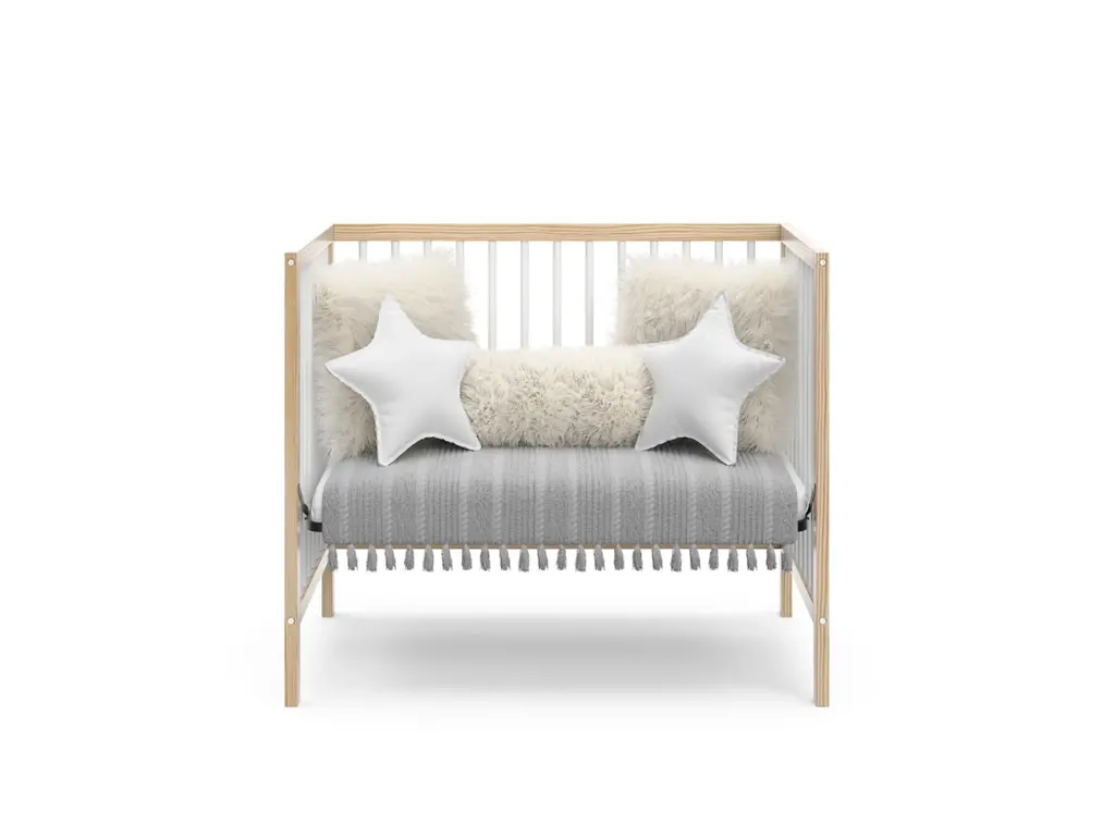 Bring your dream nursery to life with the Graco Teddi 4-in-1 Convertible Mini Crib. With its clean, modern, and timeless design, the Teddi is the perfect addition to any nursery, and easy to match with any style. The Teddi is crafted with solid pine wood, and its applied finish has been tested to meet or exceed the applicable ASTM and CPSIA safety standards. The Graco Teddi 4-in-1 Convertible Mini Crib is JPMA Certified, meaning it's been expert tested by third-party, accredited laboratories to meet or exceed all of the applicable category voluntary and mandatory safety standards. The Graco Teddi 4-in-1 Convertible Mini Crib includes a water-resistant mini crib mattress. Designed to adapt to your growing baby, the Teddi is equipped with an adjustable mattress support base with 4 different height options, so the mattress support base's position can be lowered as your child grows [please note, this crib may only be used until your child can easily climb out or is taller than 35 inches (89 cm)]. To support your child's journey from babyhood through childhood, the Teddi is able to be converted from a mini crib to a daybed, and to a twin-size bed with headboard and optional footboard (conversion kit sold separately). Graco is the proud recipient of the Parent Tested Parent Approved (PTPA) Seal of Approval for nursery and children's bedroom furniture, and the 2021-2023 Women's Choice Award for 9 out of 10 Recommended Baby & Kids Furniture. Backed by a 1-year limited manufacturer's warranty. Assembly required. Mini crib mattress included.