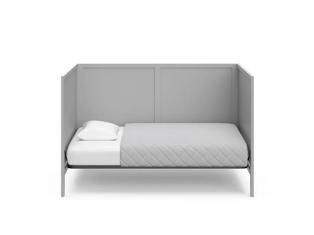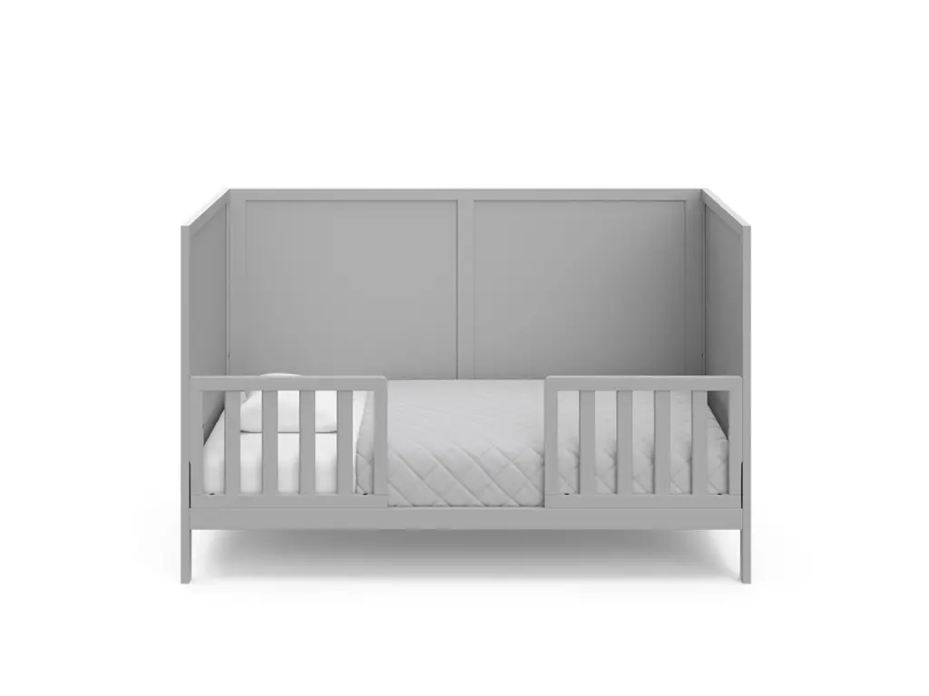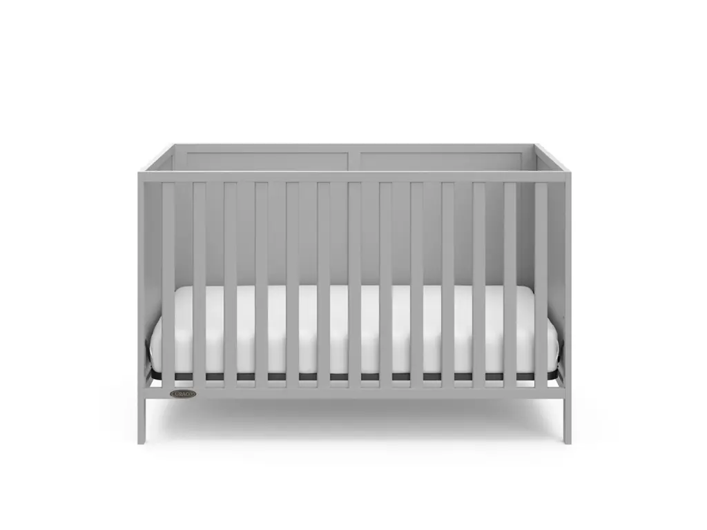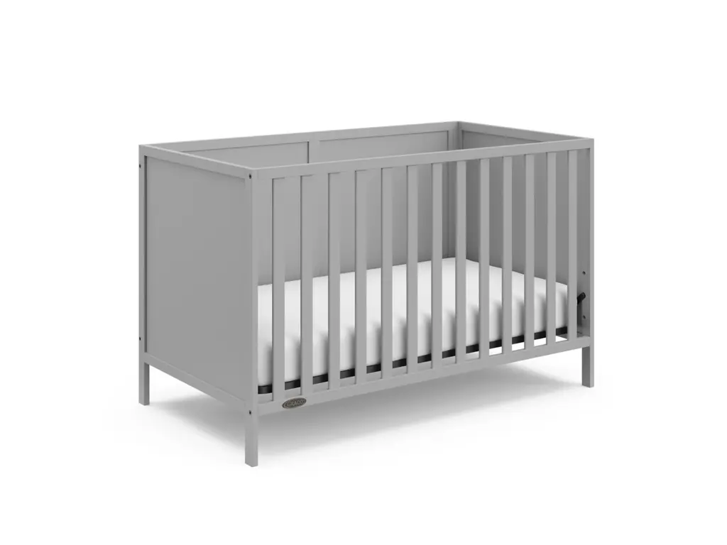 Bring your dream nursery to life with the Graco Theo 3-in-1 Convertible Crib. With its timeless design and solid-panel headboard and sides, the Theo is the perfect addition to any nursery, no mater your style. The Theo is crafted from pine wood, engineered wood, and wood composites, and its applied finish has been tested to meet or exceed the applicable ASTM and CPSIA safety standards. The Theo is JPMA Certified, meaning it has been expert tested by third-party, accredited laboratories to meet or exceed all of the applicable category voluntary and mandatory safety standards. Designed to adapt to your growing baby, the Theo is equipped with an adjustable mattress support base with 4 different height options, so the mattress support base's position can be lowered as your child grows [please note, this crib may only be used until your child can easily climb out or is taller than 35 inches (89 cm)]. To support your child's journey from babyhood to toddlerhood and beyond, the Theo can be converted from a crib to a toddler bed (not compatible with toddler guardrail) and daybed. The Graco Theo 3-in-1 Convertible Crib is designed to accommodate any standard full-size crib & toddler mattress (mattress sold separately, we recommend any Graco crib mattress). Graco is the proud recipient of the Parent Tested Parent Approved (PTPA) Seal of Approval for nursery and children's bedroom furniture, and the 2021-2023 Women's Choice Award for 9 out of 10 Recommended Baby & Kids Furniture. Backed by a 1-year limited manufacturer's warranty. Assembly required. Mattress sold separately. Not compatible with toddler safety guardrail. Does not convert to full-size bed.