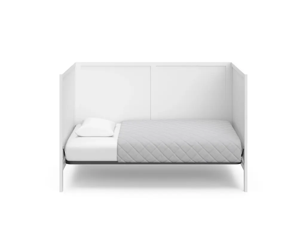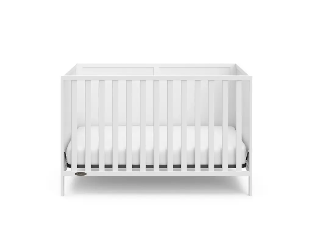 Bring your dream nursery to life with the Graco Theo 3-in-1 Convertible Crib. With its timeless design and solid-panel headboard and sides, the Theo is the perfect addition to any nursery, no mater your style. The Theo is crafted from pine wood, engineered wood, and wood composites, and its applied finish has been tested to meet or exceed the applicable ASTM and CPSIA safety standards. The Theo is JPMA Certified, meaning it has been expert tested by third-party, accredited laboratories to meet or exceed all of the applicable category voluntary and mandatory safety standards. Designed to adapt to your growing baby, the Theo is equipped with an adjustable mattress support base with 4 different height options, so the mattress support base's position can be lowered as your child grows [please note, this crib may only be used until your child can easily climb out or is taller than 35 inches (89 cm)]. To support your child's journey from babyhood to toddlerhood and beyond, the Theo can be converted from a crib to a toddler bed (not compatible with toddler guardrail) and daybed. The Graco Theo 3-in-1 Convertible Crib is designed to accommodate any standard full-size crib & toddler mattress (mattress sold separately, we recommend any Graco crib mattress). Graco is the proud recipient of the Parent Tested Parent Approved (PTPA) Seal of Approval for nursery and children's bedroom furniture, and the 2021-2023 Women's Choice Award for 9 out of 10 Recommended Baby & Kids Furniture. Backed by a 1-year limited manufacturer's warranty. Assembly required. Mattress sold separately. Not compatible with toddler safety guardrail. Does not convert to full-size bed.