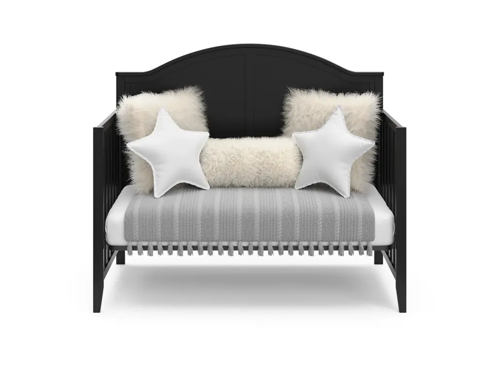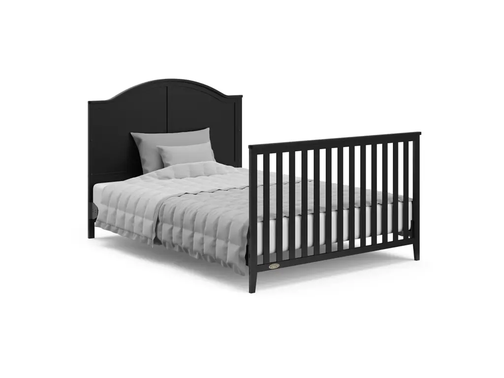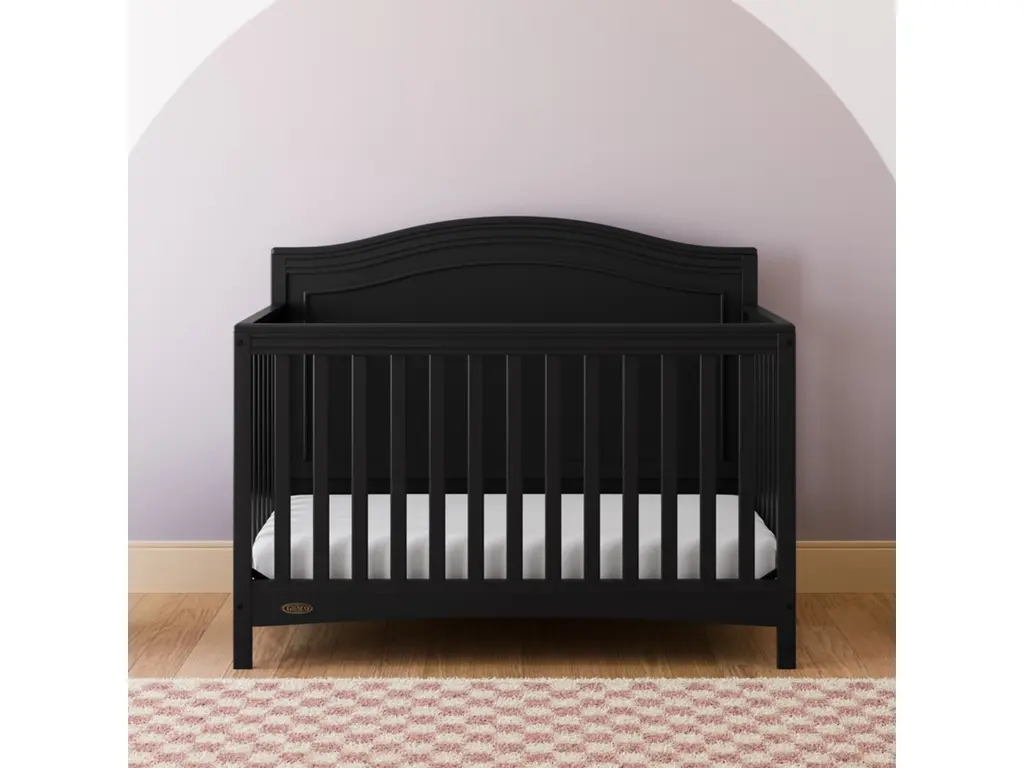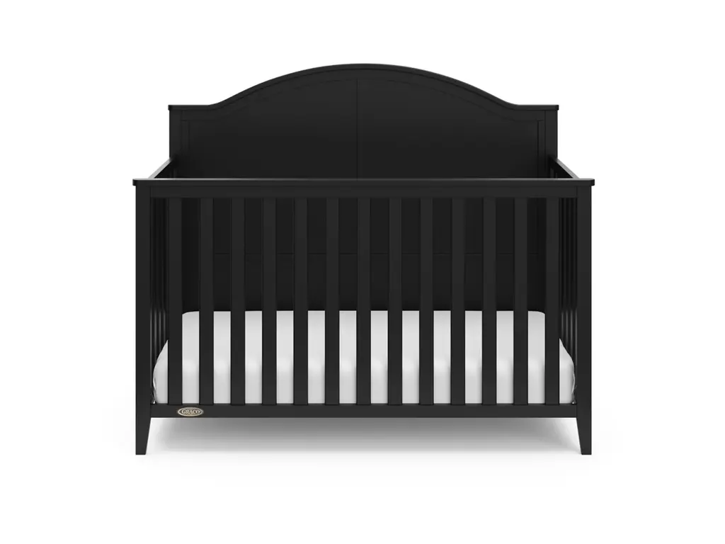 Bring your dream nursery to life with the Graco Wilfred 5-in-1 Convertible Crib. With its traditional, timeless design, the Wilfred is the perfect addition to any nursery with a more classic style. The Wilfred is crafted from pine wood, engineered wood, and wood composites, and its applied finish has been tested to meet or exceed the applicable ASTM and CPSIA safety standards. The Wilfred is GREENGUARD Gold Certified, Certified products are screened for more than 10,000 chemicals and VOCs known to pollute indoor air. Also, the Wilfred is JPMA Certified, meaning it's been expert tested by third-party, accredited laboratories to meet or exceed all of the applicable category voluntary and mandatory safety standards. Designed to adapt to your growing baby, the Wilfred is equipped with an adjustable mattress support base with 4 different height options so the mattress support base's position can be lowered as your child grows (please note, this crib may only be used until your child can easily climb out or is taller than 35 inches (89 cm). To support your child's journey from babyhood to toddlerhood and beyond, the Wilfred is able to be converted from a crib to a toddler bed (compatible with 1 or 2 toddler guardrails, each sold separately), daybed, and full-size bed with headboard and optional footboard (compatible full-size conversion kit sold separately). The Graco Wilfred 5-in-1 Convertible Crib is designed to accommodate any standard full-size crib & toddler mattress (mattress sold separately, we recommend any Graco crib mattress). Graco is the proud recipient of the Parent Tested Parent Approved (PTPA) Seal of Approval for nursery and children's bedroom furniture, and the 2023 Women's Choice Award for 9 out of 10 Recommended Baby & Kids Furniture. Backed by a 1-year limited manufacturer's warranty. Assembly required. Mattress sold separately.