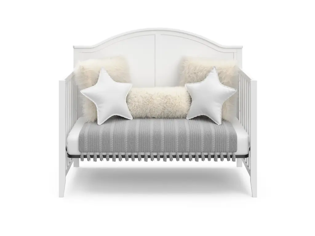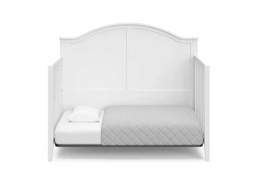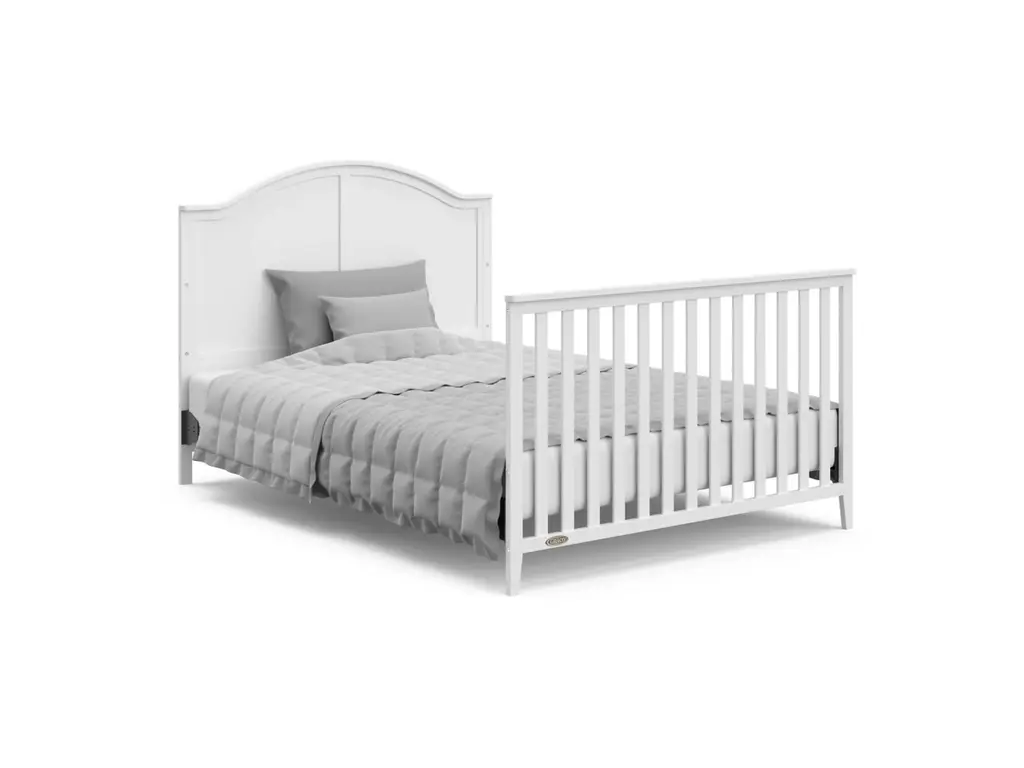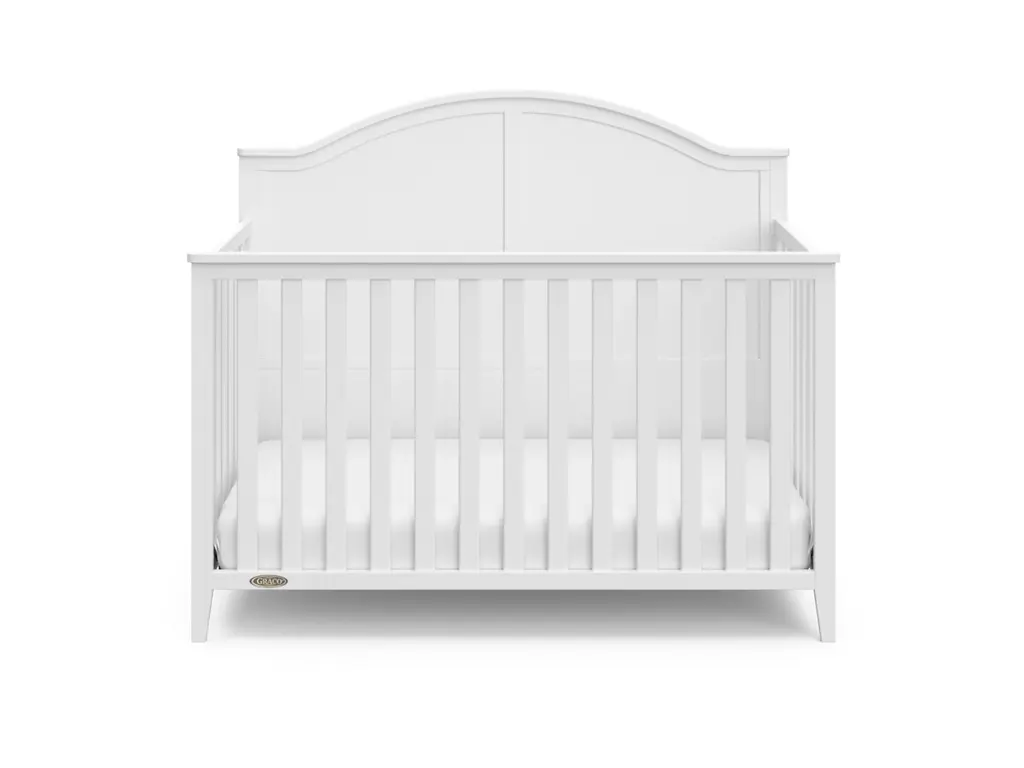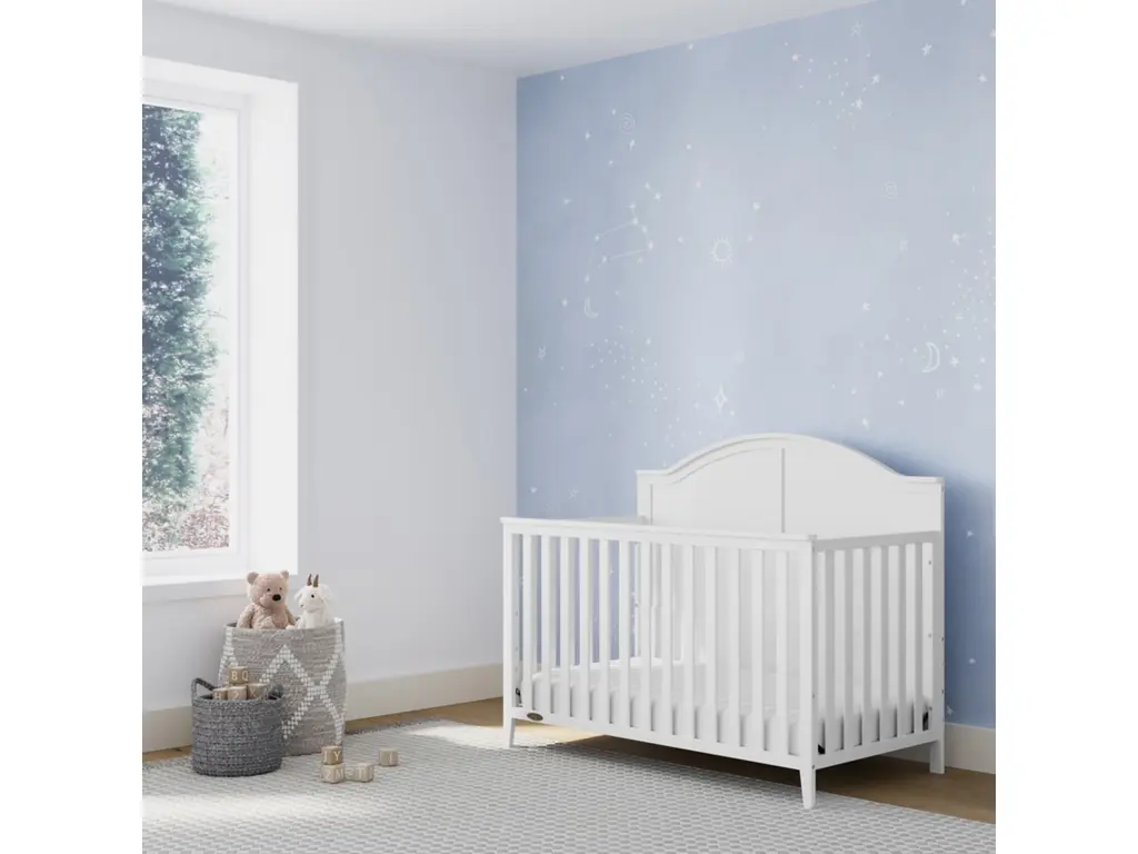 Bring your dream nursery to life with the Graco Wilfred 5-in-1 Convertible Crib. With its traditional, timeless design, the Wilfred is the perfect addition to any nursery with a more classic style. The Wilfred is crafted from pine wood, engineered wood, and wood composites, and its applied finish has been tested to meet or exceed the applicable ASTM and CPSIA safety standards. The Wilfred is GREENGUARD Gold Certified, Certified products are screened for more than 10,000 chemicals and VOCs known to pollute indoor air. Also, the Wilfred is JPMA Certified, meaning it's been expert tested by third-party, accredited laboratories to meet or exceed all of the applicable category voluntary and mandatory safety standards. Designed to adapt to your growing baby, the Wilfred is equipped with an adjustable mattress support base with 4 different height options so the mattress support base's position can be lowered as your child grows (please note, this crib may only be used until your child can easily climb out or is taller than 35 inches (89 cm). To support your child's journey from babyhood to toddlerhood and beyond, the Wilfred is able to be converted from a crib to a toddler bed (compatible with 1 or 2 toddler guardrails, each sold separately), daybed, and full-size bed with headboard and optional footboard (compatible full-size conversion kit sold separately). The Graco Wilfred 5-in-1 Convertible Crib is designed to accommodate any standard full-size crib & toddler mattress (mattress sold separately, we recommend any Graco crib mattress). Graco is the proud recipient of the Parent Tested Parent Approved (PTPA) Seal of Approval for nursery and children's bedroom furniture, and the 2023 Women's Choice Award for 9 out of 10 Recommended Baby & Kids Furniture. Backed by a 1-year limited manufacturer's warranty. Assembly required. Mattress sold separately.