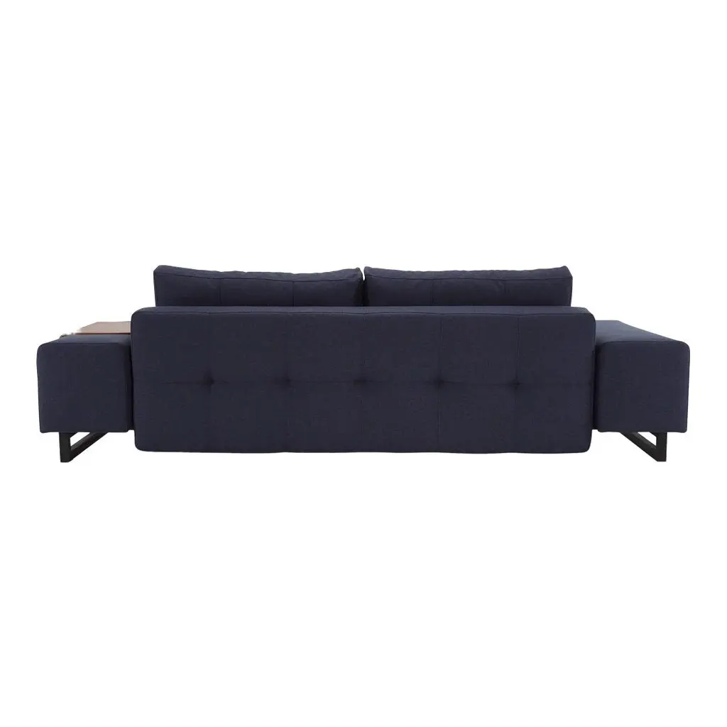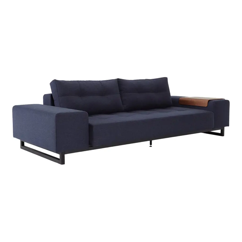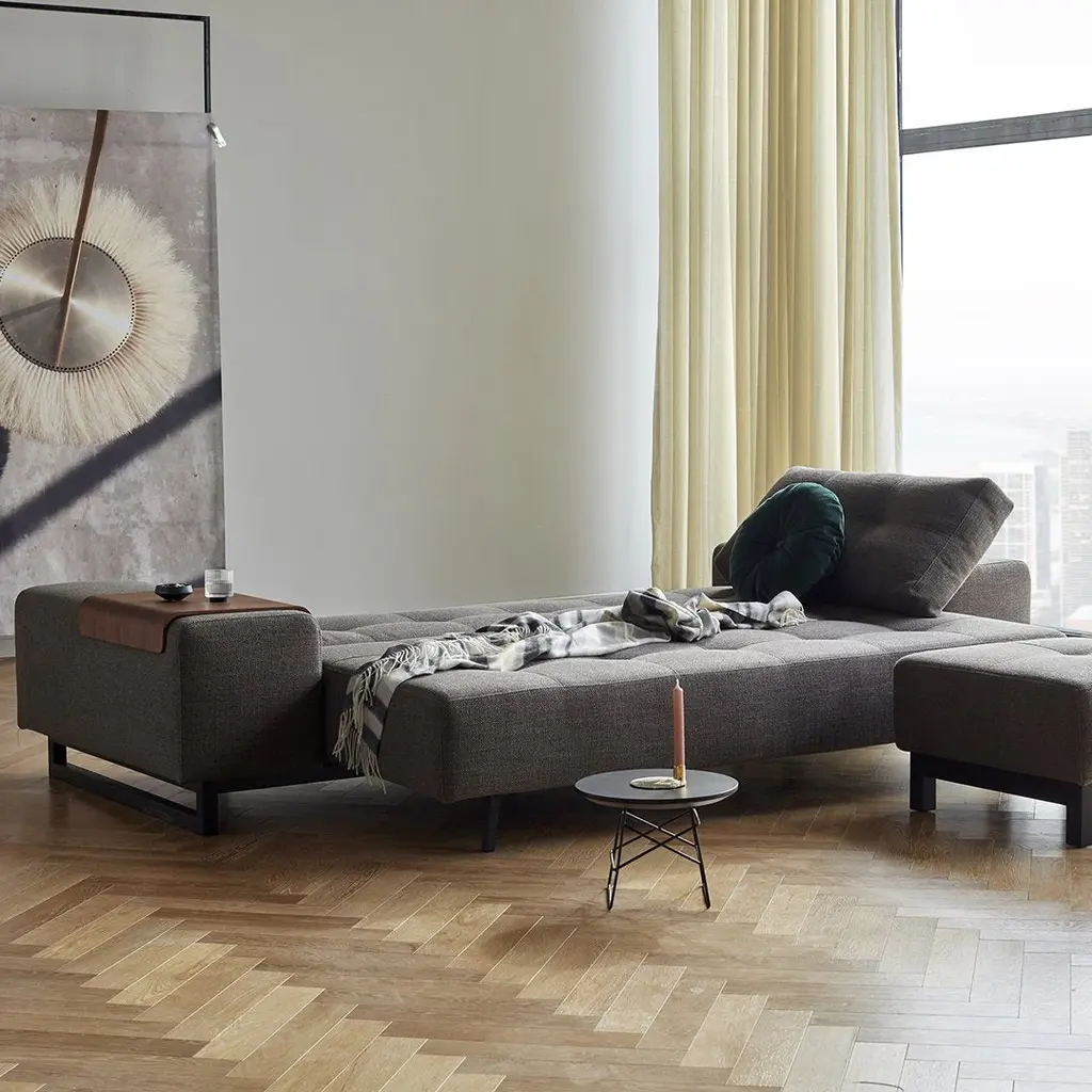 "Innovation Living's uniqueness lies in the uncompromising aesthetics, creativity, quality, and functionality. The aesthetics reflect the zeitgeist of our time and inspire the creative approach to solving every day challenges brought forth by the global compact living trends and the need for functional solutions to real problems. The Slyder series convert easily from sofas to beds providing family and friends a chance to spend time together, despite limited living space. So, whether the sofa bed needs to serve as a primary sitting/lounging unit or a primarily as a bed, the aesthetic and durable quality of our Slyders offer the solution." - Per Weiss, Chief Design Officer The design of the Grand Deluxe Excess Lounger stands majestically as a sofa bed tour de force. An imposing display of fusion between contemporary design and multifunction. The grandness of the armrests give the sofa a clear design reference and multifunction when combined with the integrated tray table. Easily transformed from sofa to spacious bed, the Grand Deluxe is a superior manifestation of Scandinavian multifunctional design. Excess Pocket Spring Technology: The higher coils in the Excess Pocket Spring models provide a softer sofa comfort. In combination with the core foam casing, the Excess mattress has higher absorption of pressure on each spring for a more comfortable rest. **Includes two arm trays
