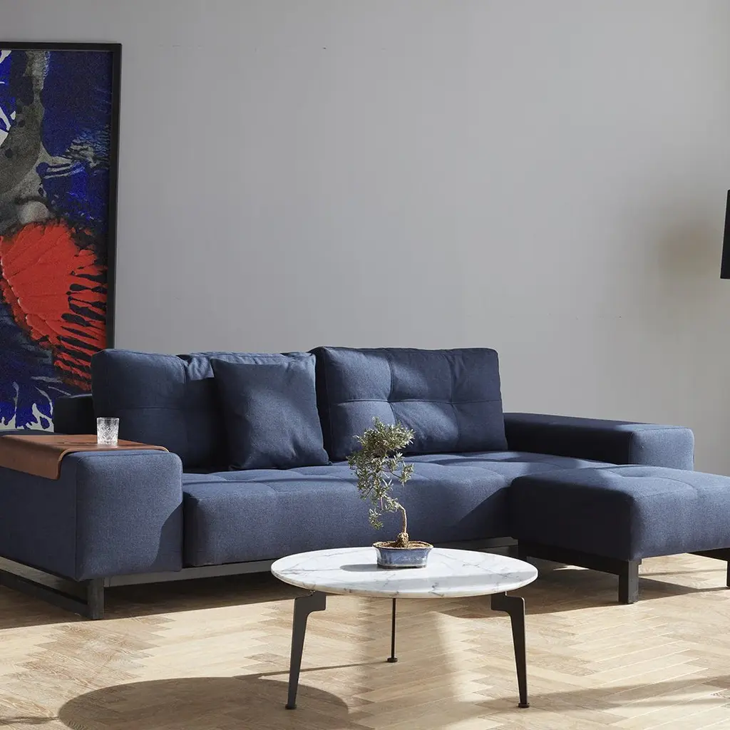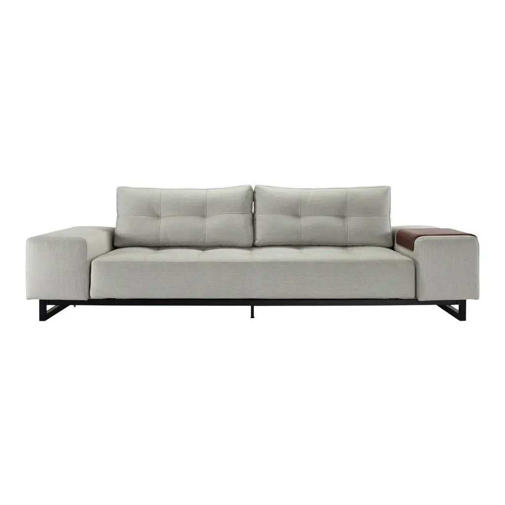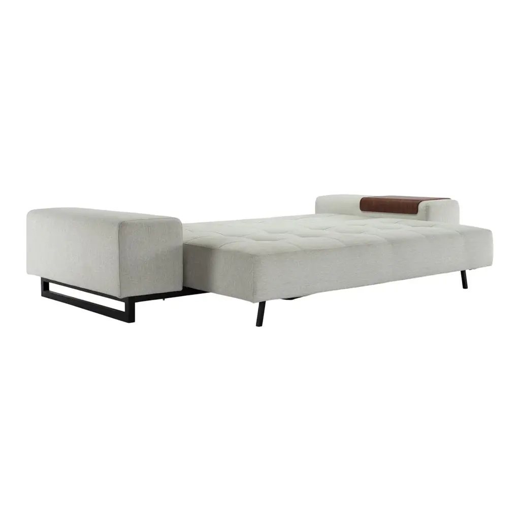 "Innovation Living's uniqueness lies in the uncompromising aesthetics, creativity, quality, and functionality. The aesthetics reflect the zeitgeist of our time and inspire the creative approach to solving every day challenges brought forth by the global compact living trends and the need for functional solutions to real problems. The Slyder series convert easily from sofas to beds providing family and friends a chance to spend time together, despite limited living space. So, whether the sofa bed needs to serve as a primary sitting/lounging unit or a primarily as a bed, the aesthetic and durable quality of our Slyders offer the solution." - Per Weiss, Chief Design Officer The design of the Grand Deluxe Excess Lounger stands majestically as a sofa bed tour de force. An imposing display of fusion between contemporary design and multifunction. The grandness of the armrests give the sofa a clear design reference and multifunction when combined with the integrated tray table. Easily transformed from sofa to spacious bed, the Grand Deluxe is a superior manifestation of Scandinavian multifunctional design. Excess Pocket Spring Technology: The higher coils in the Excess Pocket Spring models provide a softer sofa comfort. In combination with the core foam casing, the Excess mattress has higher absorption of pressure on each spring for a more comfortable rest. **Includes two arm trays