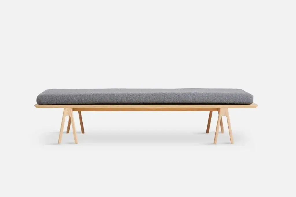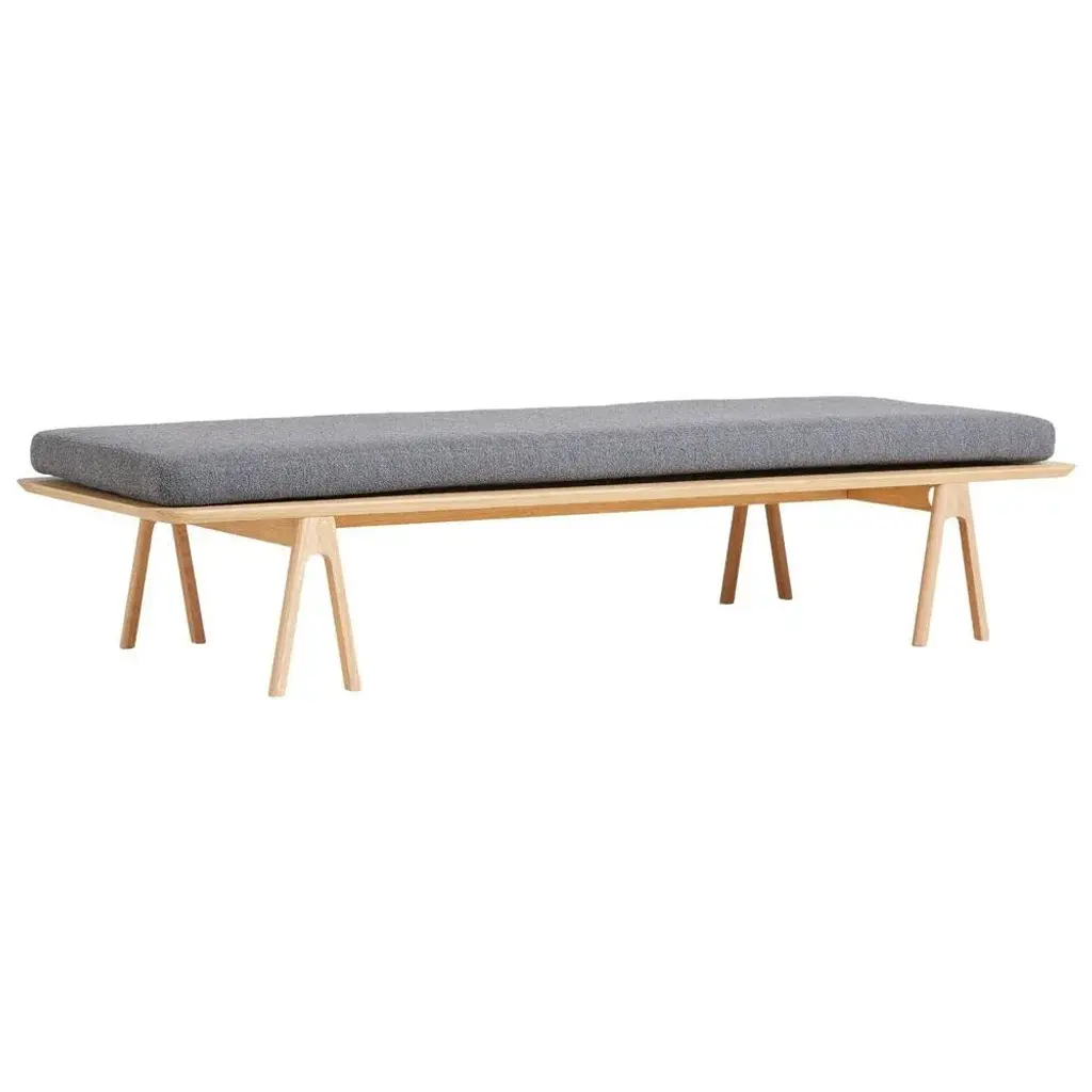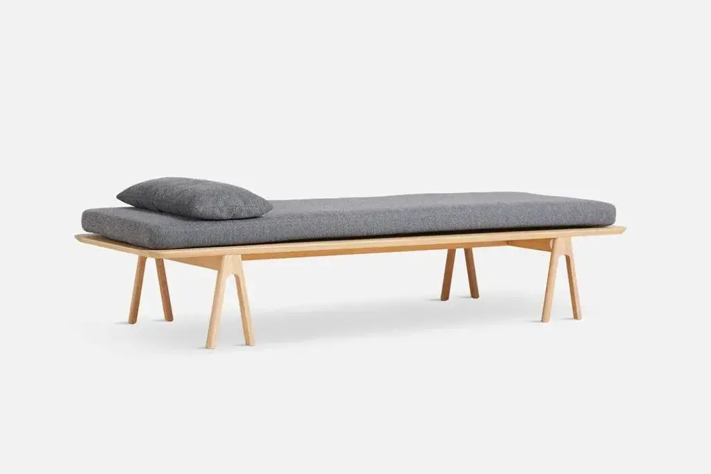 Grey oak level daybed by msds studio. Materials: foam, oak, non slip fabric. Dimensions: d 76.5 x w 190 x h 41 cm also available in different colours. The founders, mia and torben koed, decided to put their 30 years of experience into a new project. It was time for a change and a new challenge. The challenge was to build an ambitious design brand from the ground up with high-quality materials and great attention to the little details. With a drive to create new originals, the woud collection is founded upon the idea to look ahead instead of looking back and share the love for honest design. Therefore, we are eager to discover and develop new ideas whether it being in form, function or choice of material. Msds studio is a successful canadian design studio that works in interior, furniture and lighting design. The designers behind the studio are jessica nakanishi and jonathan sabine. A couple who have mastered to get their name established at numerous of the world’s leading design brands in a few years. We are proud to be able to have three of their designs in our collection. The studio is dedicated to material exploration, rigour and resourcefulness. With a modern approach to design, they create innovative design that engages contemporary culture while staying true to the inheritance of craftsmanship. Their work synthesises very meticulous considerations of colour, form and space, which results in simple designs. The annular pendant was the product that started the collaboration of msds and woud. The design sparked a love at first sight reaction at the stockholm furniture fair in 2015 and since then, our collaboration has evolved. With great chemistry and appreciation, the study lamp and level daybed joined the woud collection.